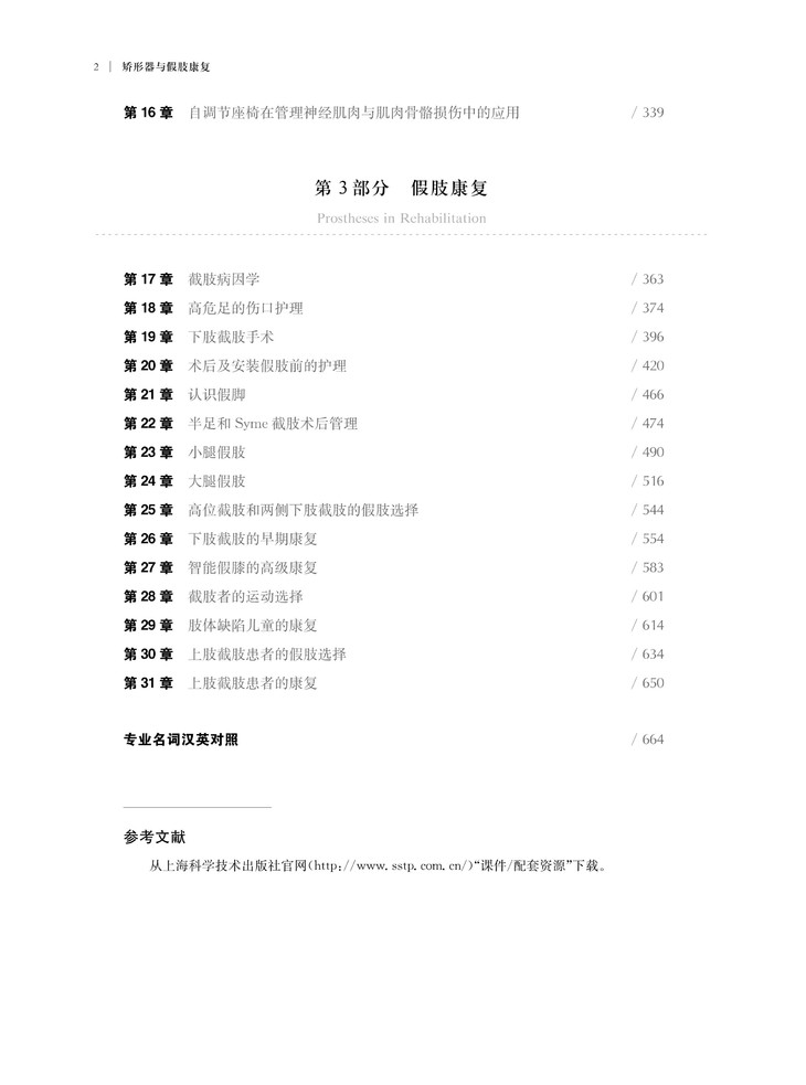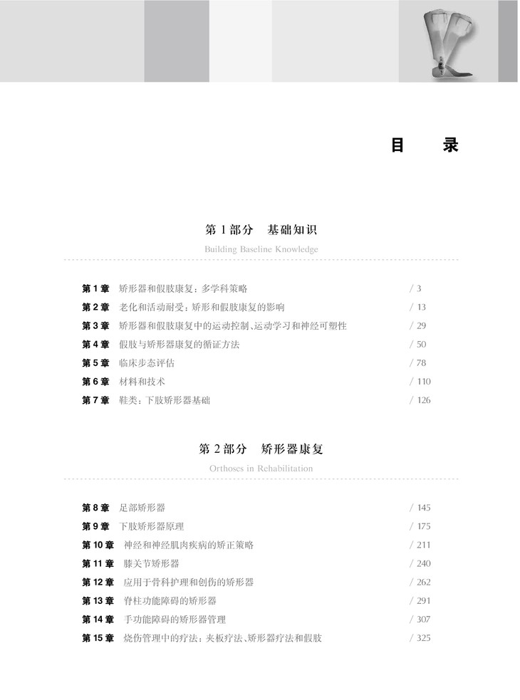 本书从物理治疗和作业治疗、矫形器和假肢、药物和手术等领域跨学科的视角,从矫形器与假肢的基础知识进行论述,通过400幅充分说明临床问题的示意图、照片和表格,分别对矫形器和假肢的原理、制作、临床应用方面进行详细论述,包括矫正和修复前的评估准则、使用矫形器和假肢患者的功能训练,以及不同矫形器与假肢状况在康复领域中的应用。