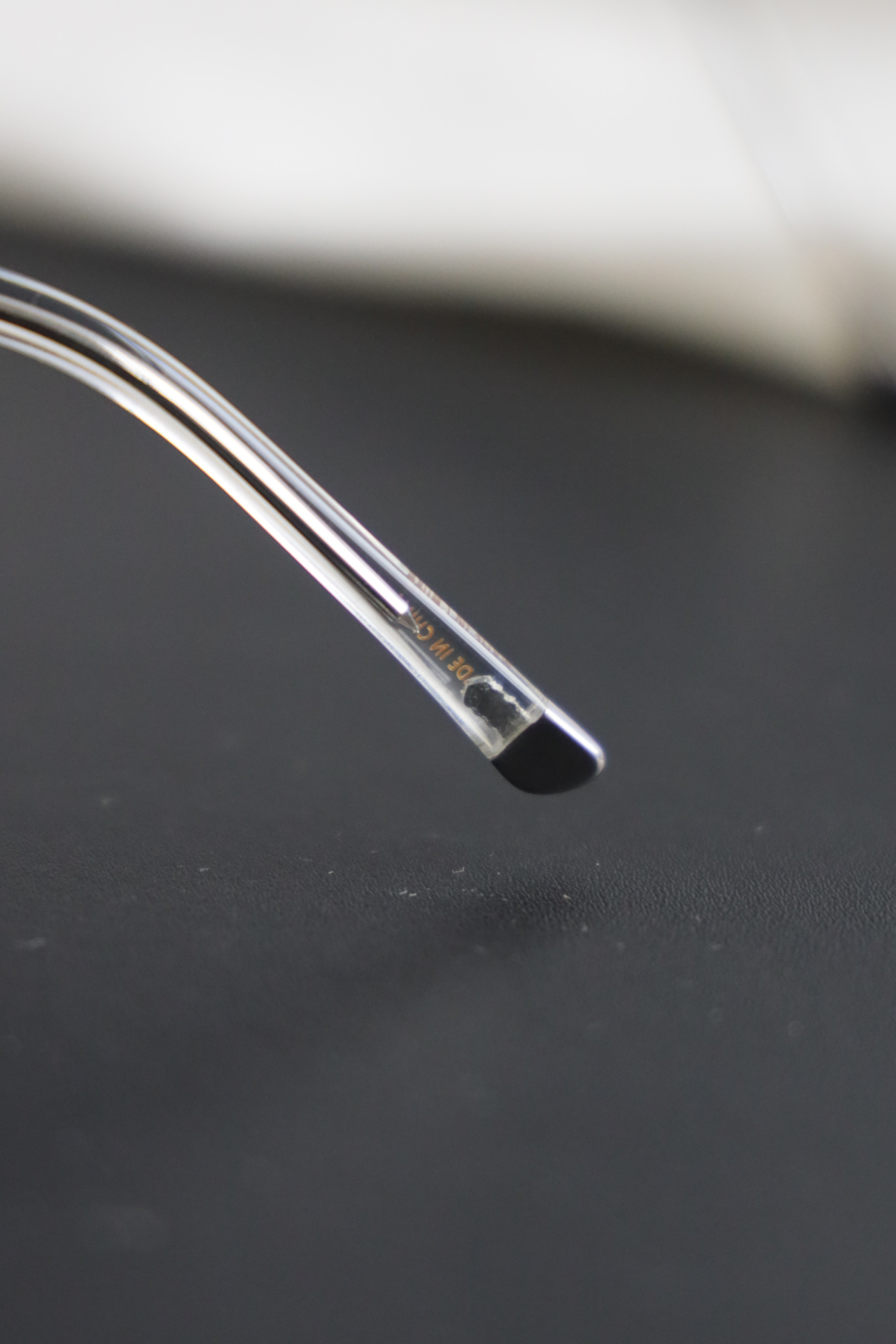 银色镜腿尖端由钛制成,可避免皮肤过敏反应,增加舒适度。