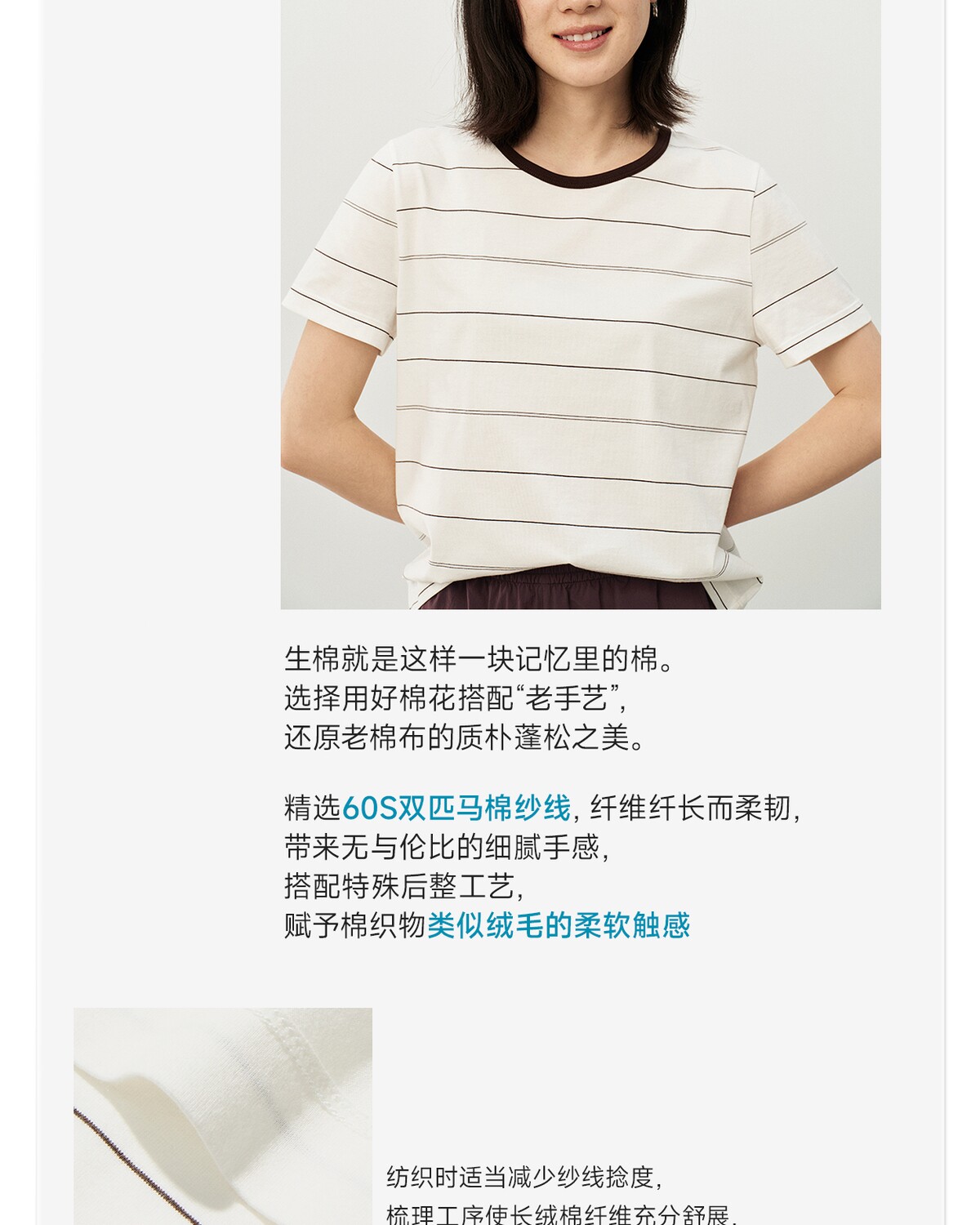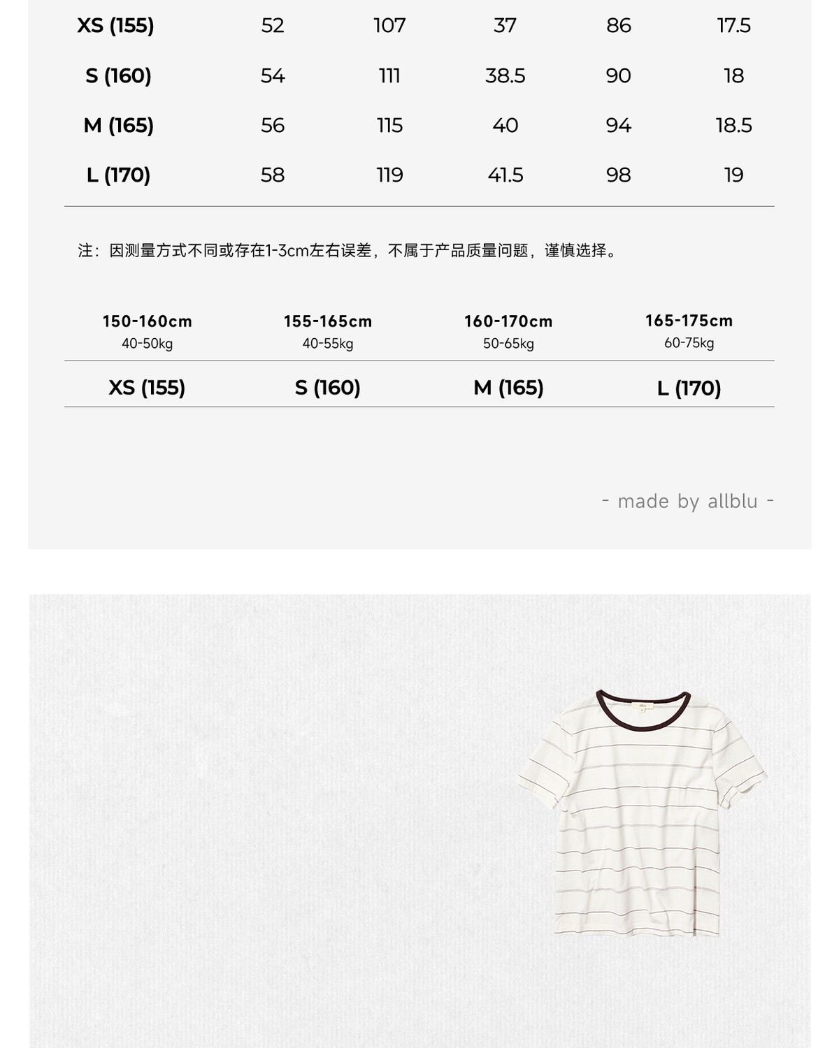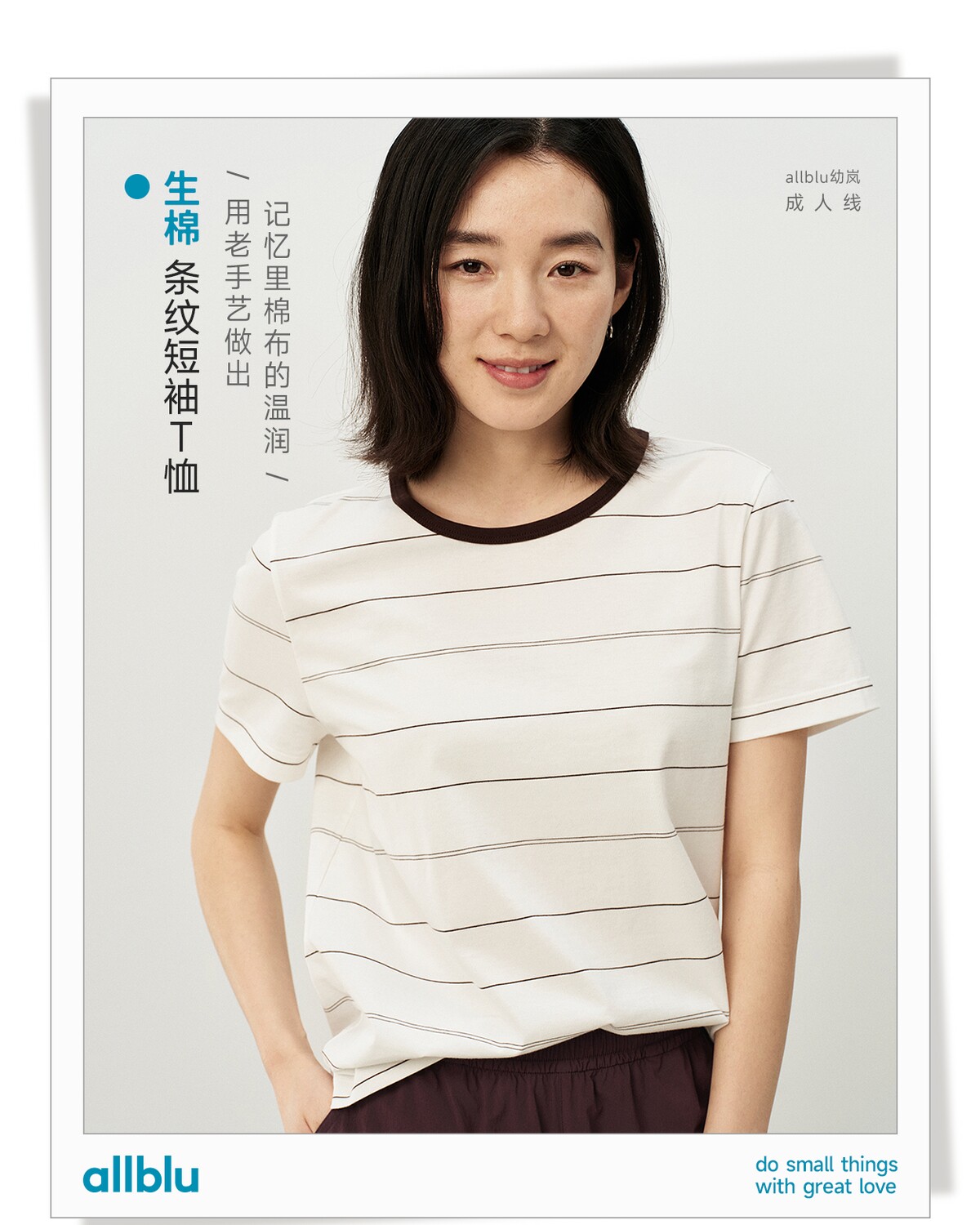 【夏Vol.1】allblu女装“记忆里的温润棉布”26春夏【生棉】女士条纹短袖T恤ZY