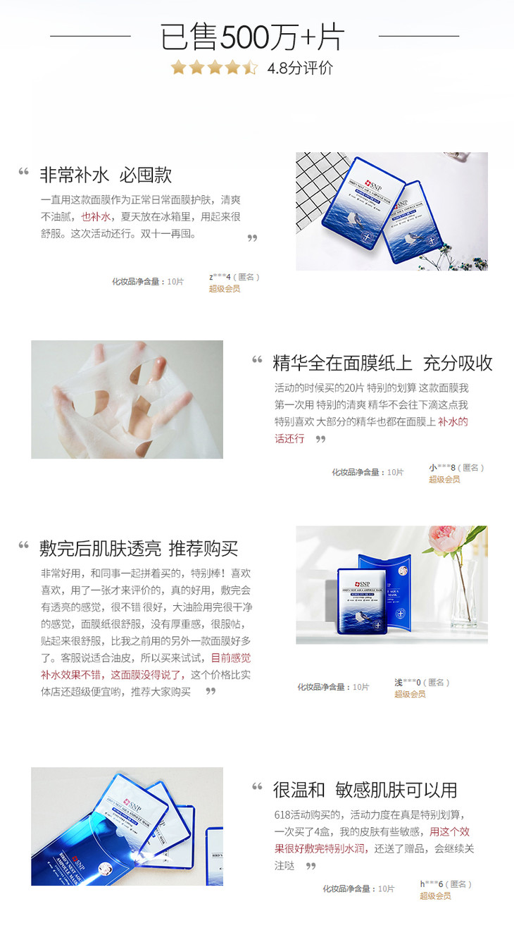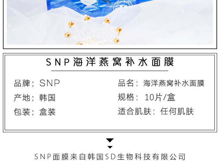 现货▲韩国 SNP海洋燕窝补水面膜 深层补水 孕妇可用