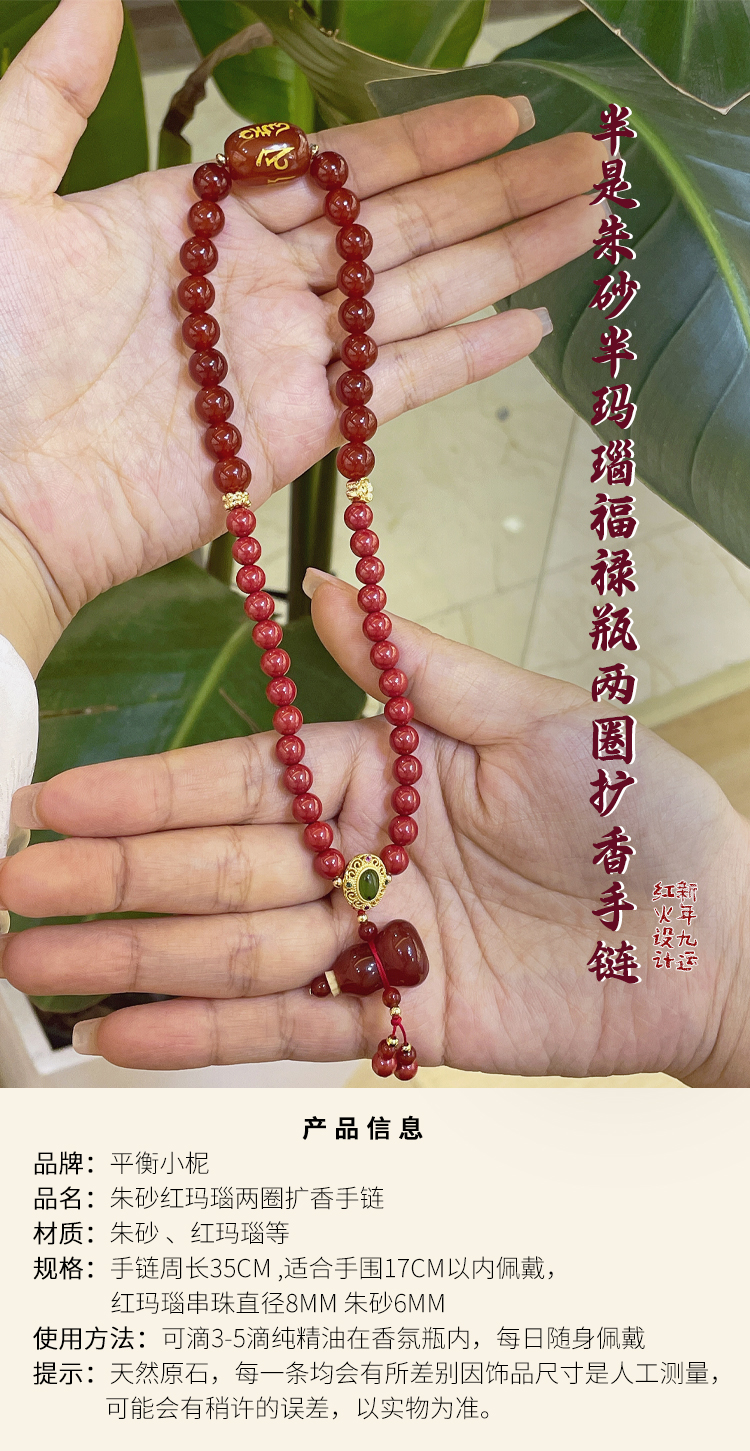 半是朱砂半玛瑙福禄瓶两圈扩香手链 新年 九运红火设计 红运当头香氛手串