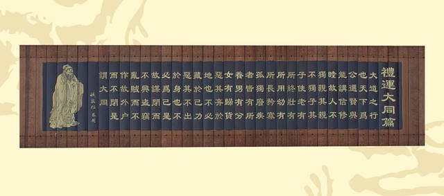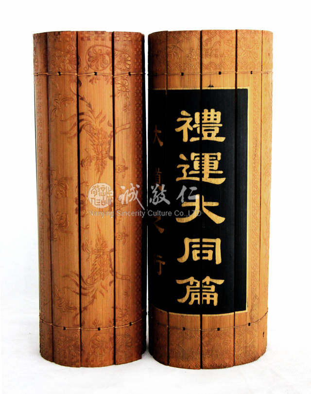 【基本信息】: 产品材质:黄山竹 产品规格:30*120厘米 【产品文化】: 礼运大同篇 【内容介绍】: 大道之行也,天下为公。选贤与能,讲信修睦。故人不独亲其亲,不独子其子,使老有所终,壮有所用,幼有所长,鳏寡孤独废疾者皆有所养。男有分,女有归。货恶其弃於地也,不必藏於己。力恶其不出於身也,不必为己。是故谋闭而不兴,盗窃乱贼而不作,故外户而不闭,是谓大同。 【白话易解】: 圣人的大道能够实行的时代,天下是为天下人所共有的。大家选举贤能的人来共同治理,人人讲求诚信,彼此和睦相处。不独爱护自己的亲人,不独慈爱自己的儿女,更能推广爱心到其他人身上,使得社会上年长的老人皆能安享天年,青壮者都能贡献一己 之力,青少年与儿童也都能接受良好的教育,那些孤苦无依及残废者,也都能受到适当的照顾。男人能恪尽自己本分应尽的职责,女生也各有自己的家室。各种物质资源,不喜欢被浪费、弃置,希望能发挥应有的功效;但也不能私藏据为己用。有能力不应该舍不得服务奉献,但也不能只是图利自己。能够做到这样,整个社会就不会发生勾心斗角,损人利己的事,也不会再有抢劫、偷窃、杀人的事出现,纵然窗不关、门不闭,也不用担惊害怕,生活自在安乐,那样的社会真可以说是大同世界了。 【悬挂方法】: 1、竹简两端的竹片背面有绳子,可直接挂在墙上的钉子或者挂钩上; 2、还可以如书法作品一样加画框装裱,更显庄严; 3、如不挂墙上,可直接展开,靠在橱窗或墙壁上。 |