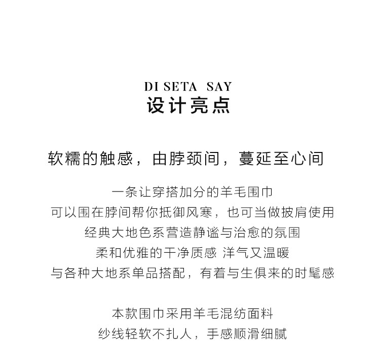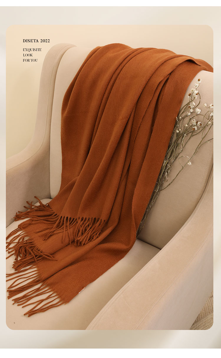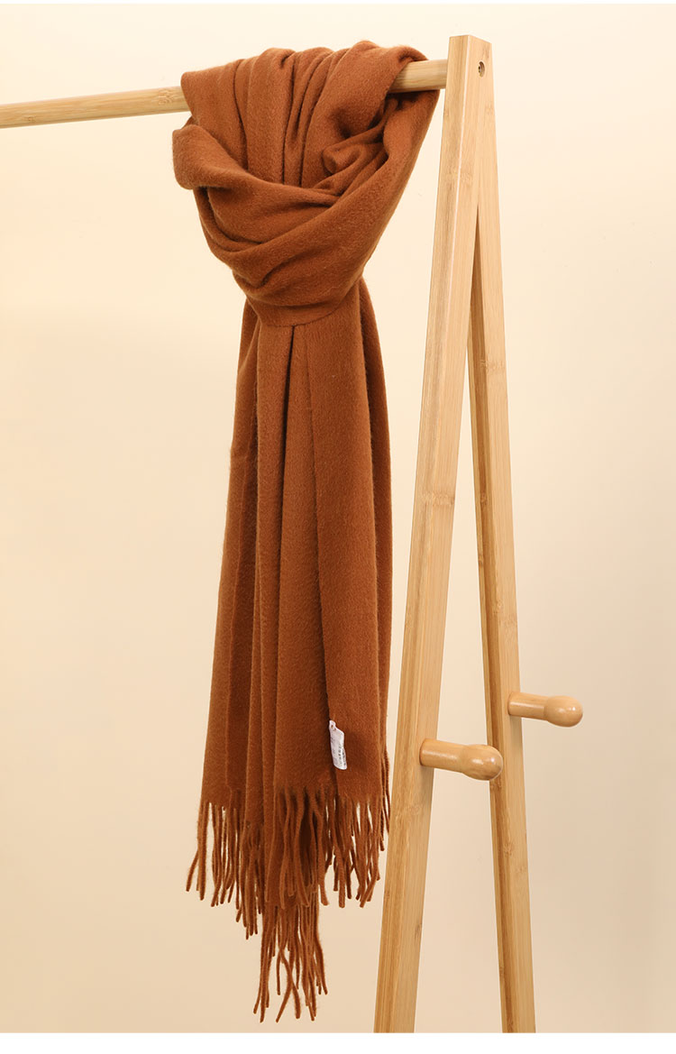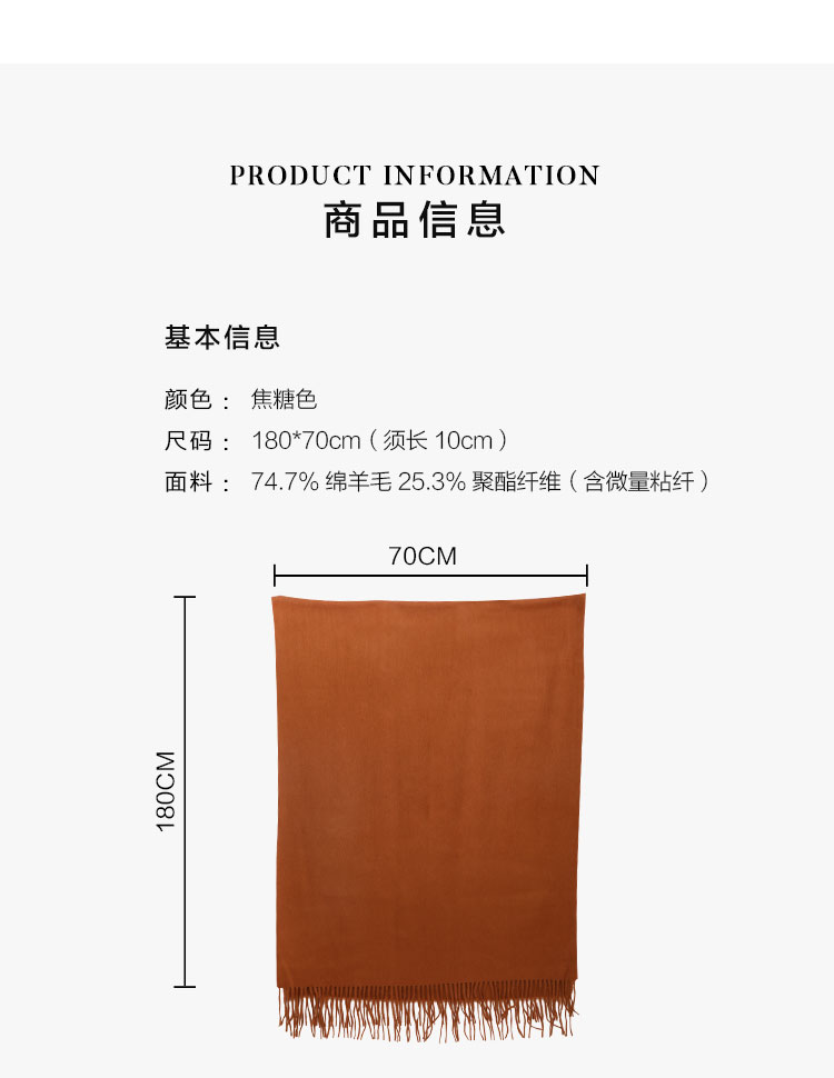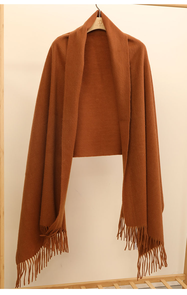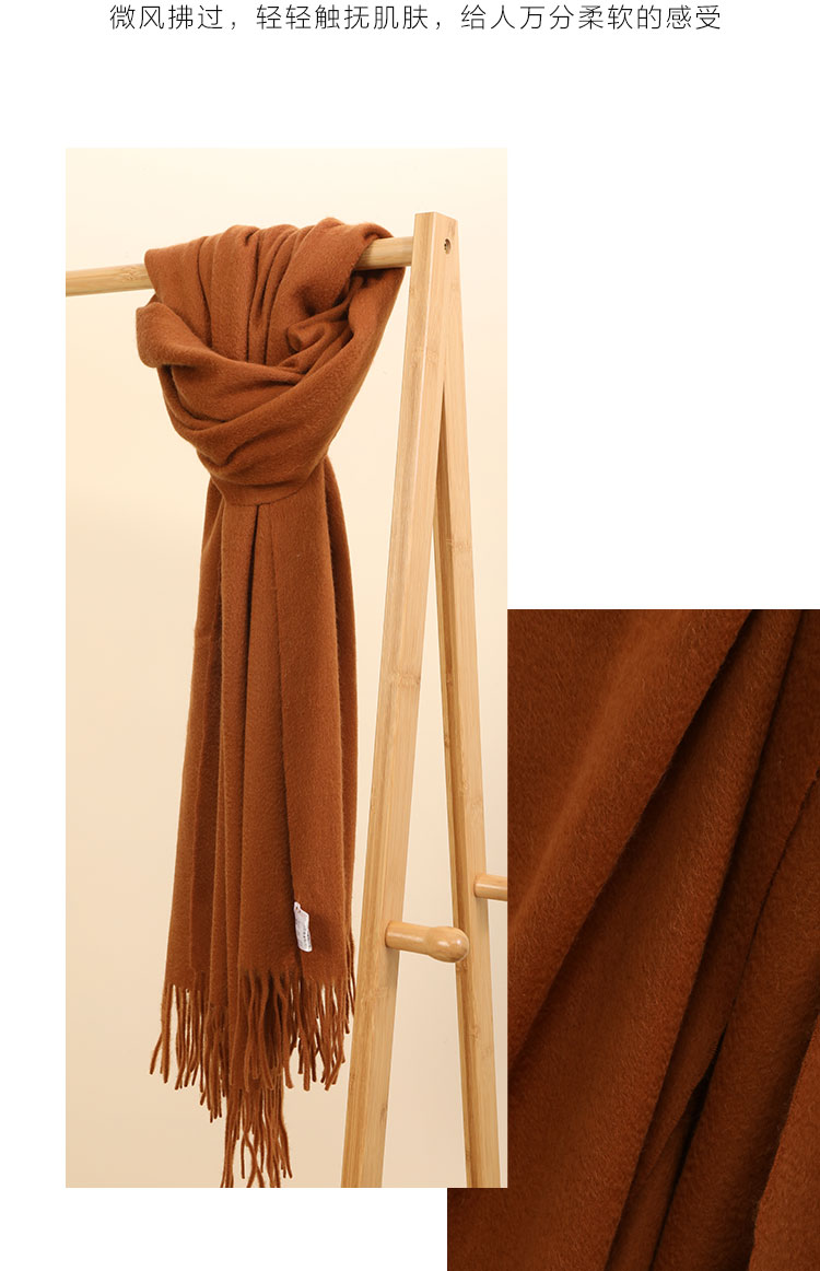 玳莎羊毛加厚围巾冬季纯色简约百搭流苏设计感保暖围脖披肩 CD52003