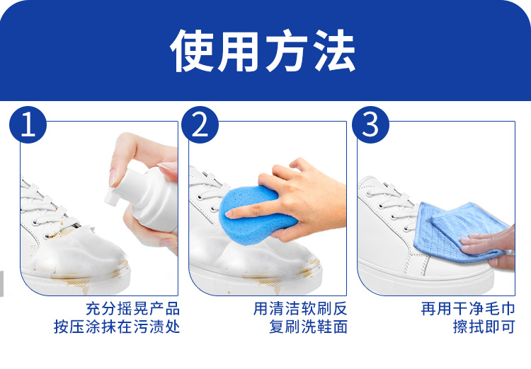 【小白鞋泡沫清洁剂】增白去黄去渍去污免洗便携泡沫型清洁剂mk