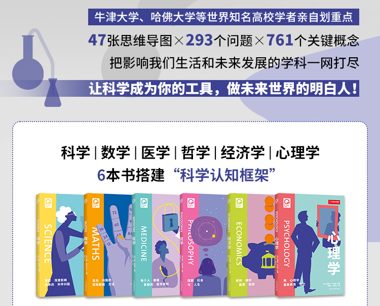 “给这个世界的好问题”6册套装|思维导图+一问一答,建立科学学习思维,帮你理解知识发现问题 科学、数学、医学、哲学、经济学、心理学 轻科普