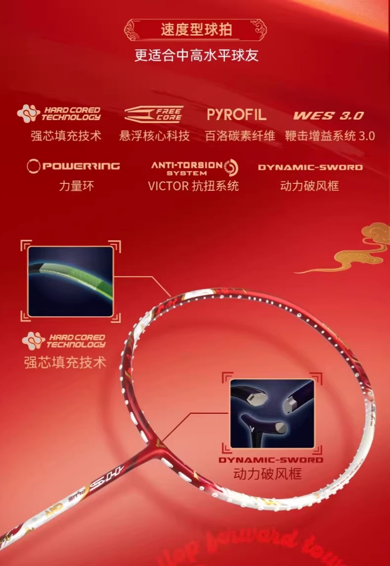 [空拍礼盒装]VICTOR威克多马到成功马年限定羽毛球拍ARS-HS PLUS CNY26 GB极音速礼盒装羽毛球拍
