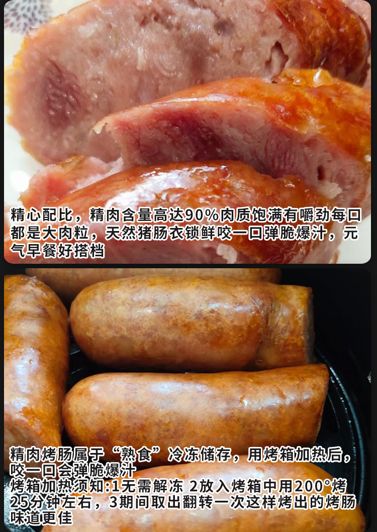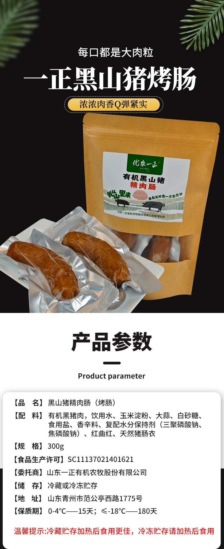 【厂商直发】一正黑山猪肉烤肠300g*4袋装大块肉粒肉香浓郁包邮