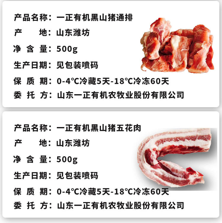 【厂商直发】有机黑山猪肉五花肋排腿肉组合3斤装无抗生素山林散养包邮