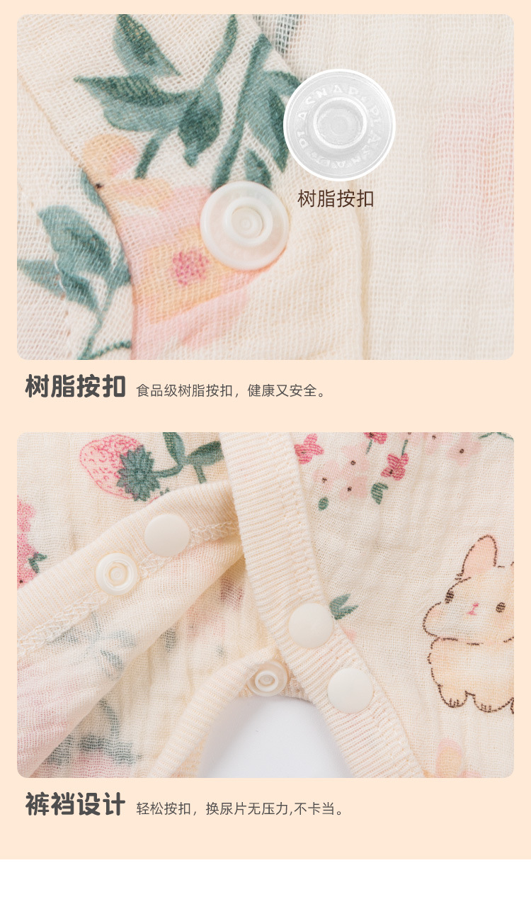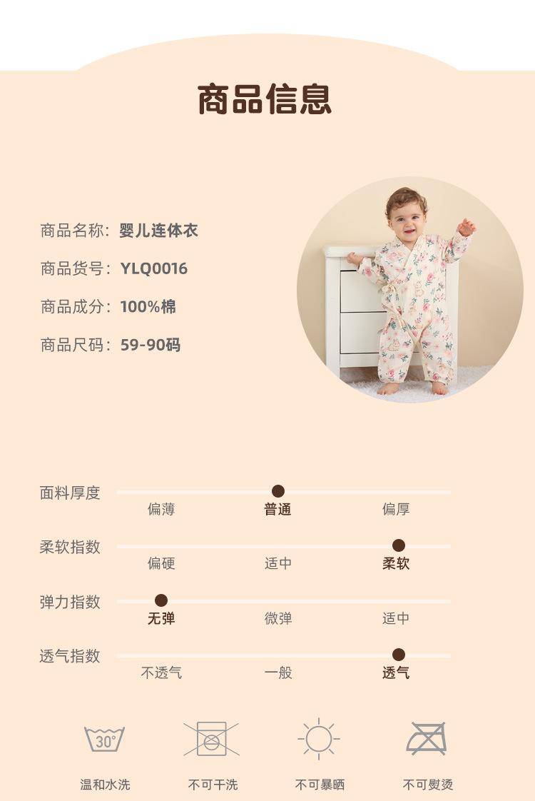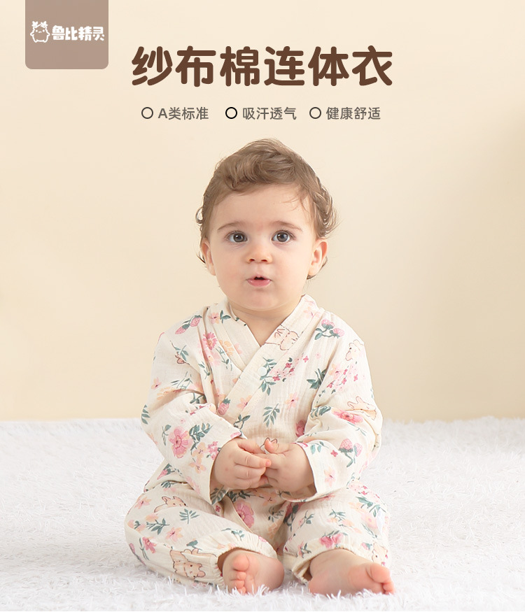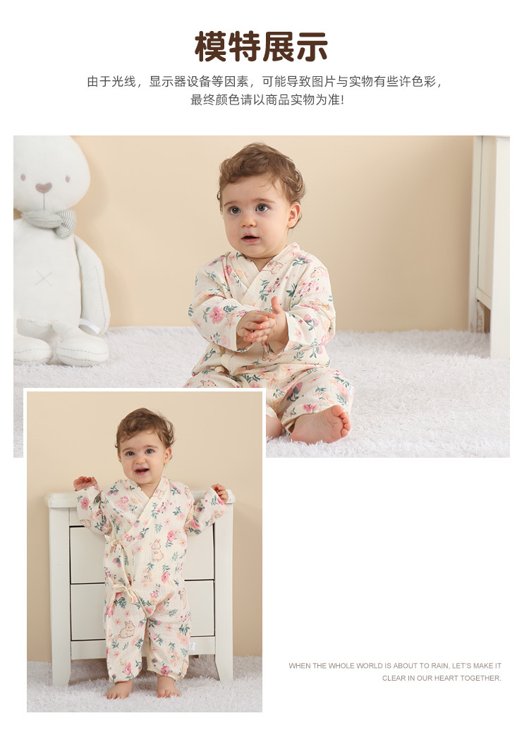 【婴儿薄款纱布棉连体衣】春夏新生儿宝宝长袖和尚服A类纯棉家居爬服
