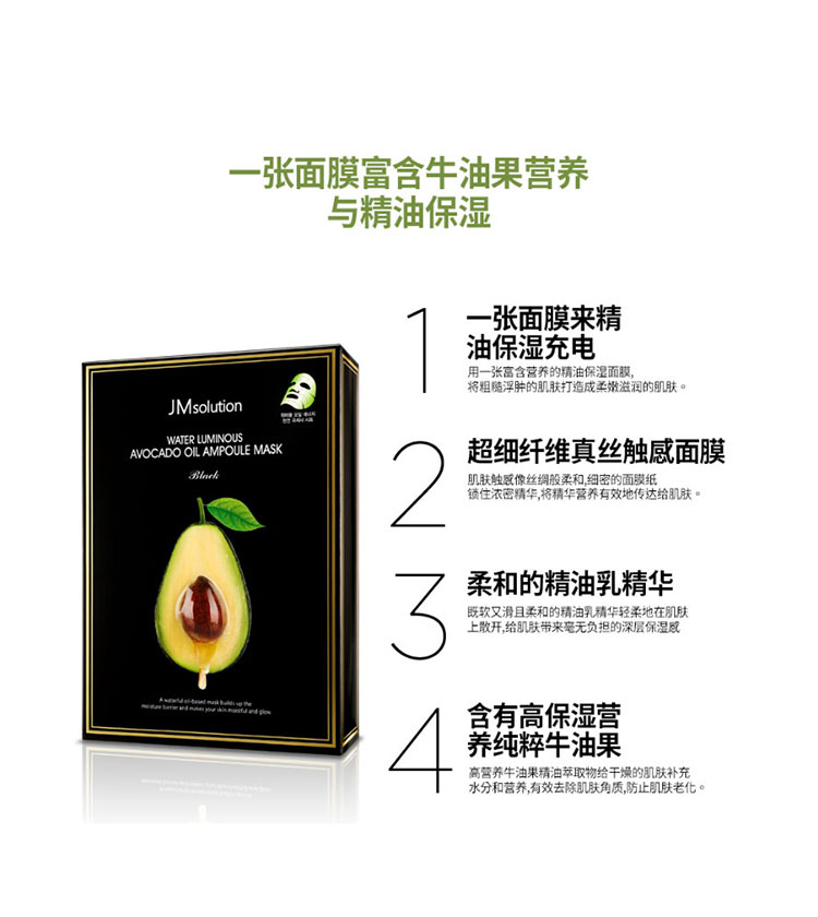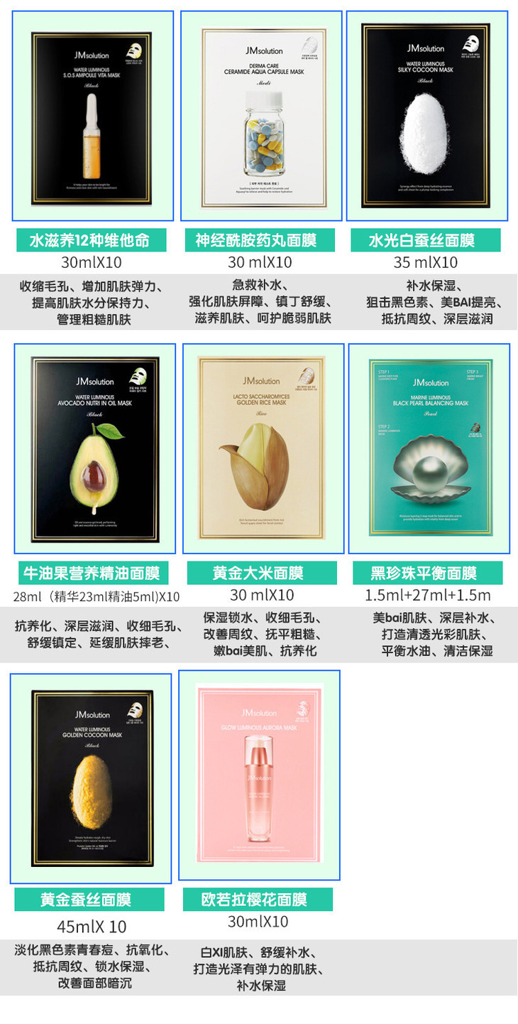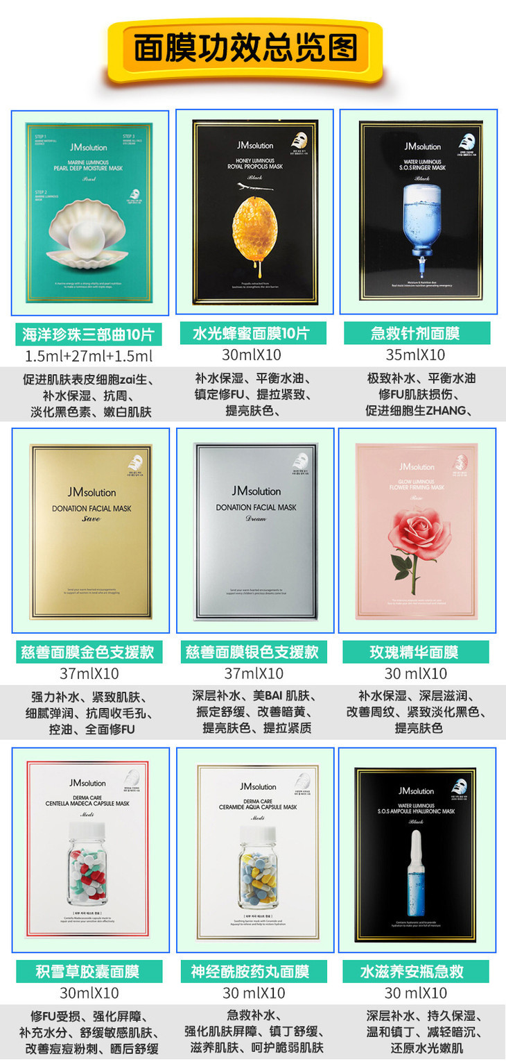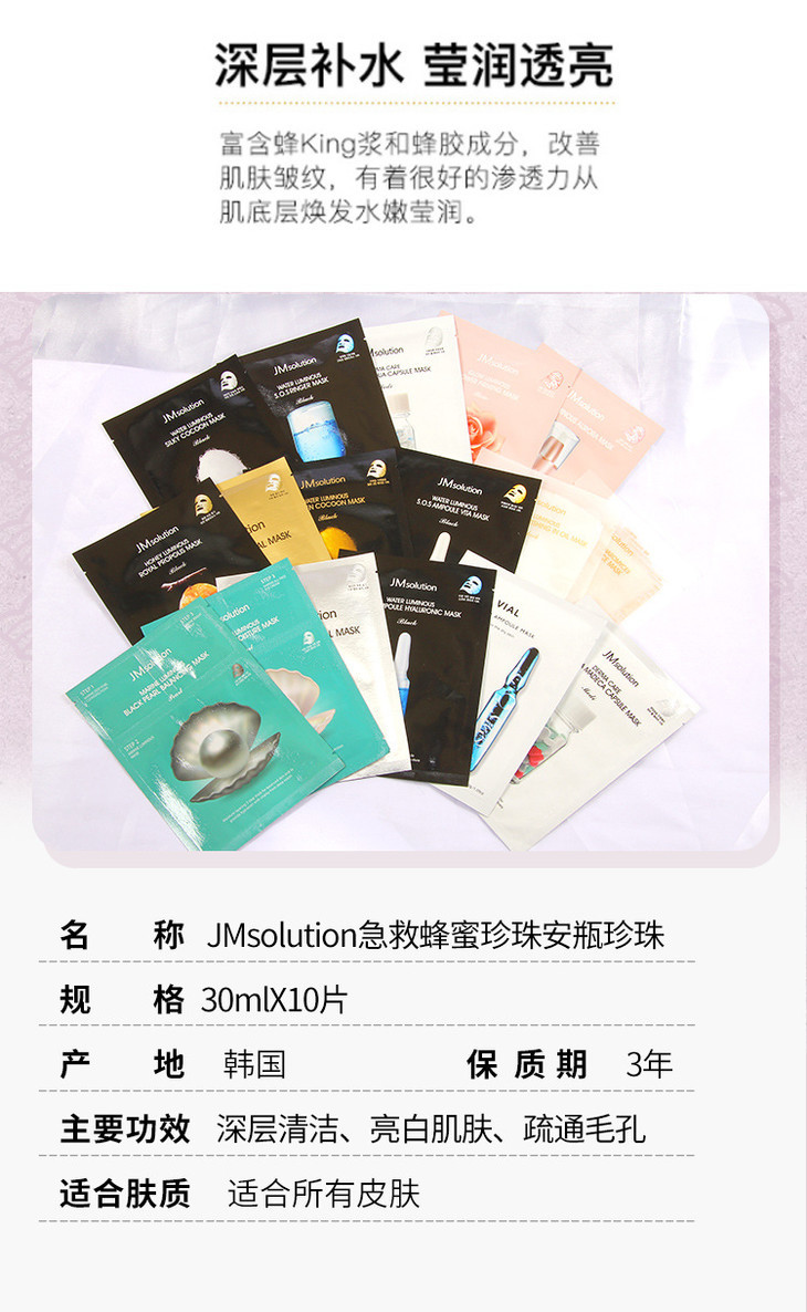 【一般贸易中文标】韩国进口 JM solution 蜂蜜珍珠急救玫瑰牛油果面膜 10片/盒
