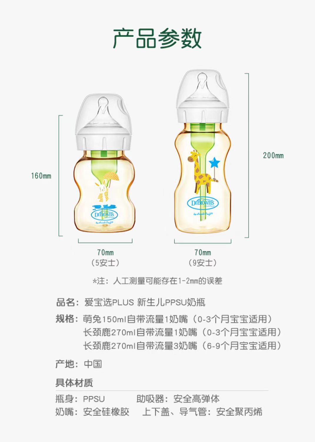 布朗博士爱宝选PLUS奶瓶新生儿宽口径奶瓶防胀气奶瓶奶嘴
