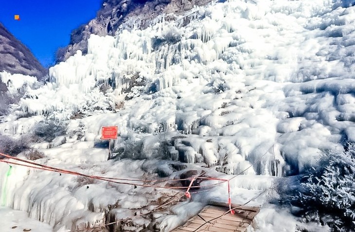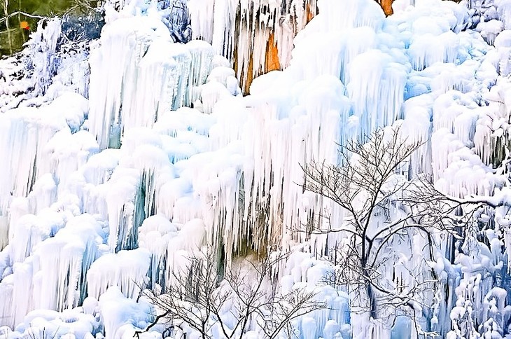 白雪与冰山融合,天然冰瀑、冰帘、冰花美景、冰挂,自然融为一体,漫步其间,好像进入到水晶世界!凝结的晶莹剔透的冰川,银光闪烁,空濛中挂着冰凌的山洞,挺立着冰塔、冰笋、冰菇,简直美到窒息,相见恨晚。