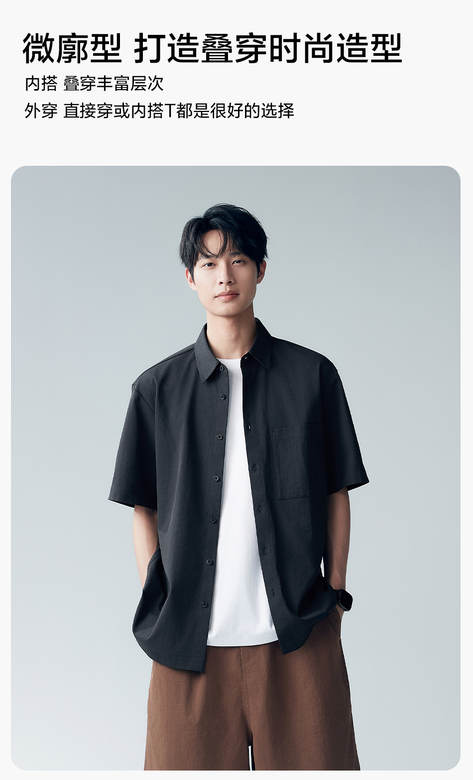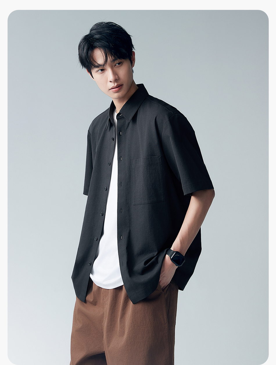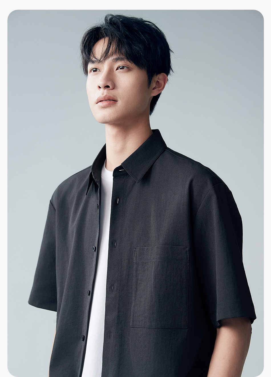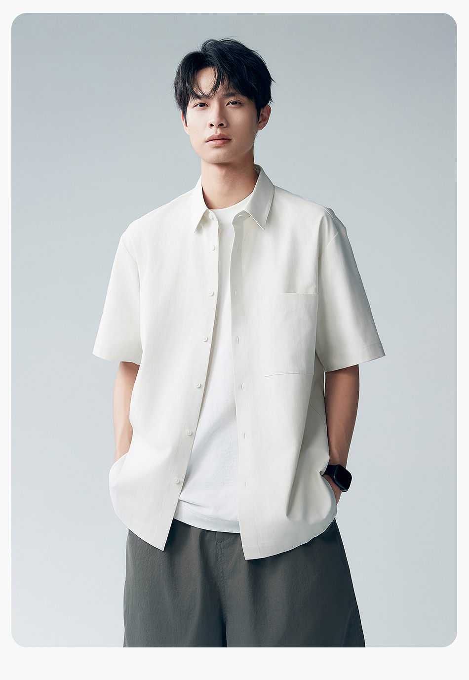 棉仓353804004-微宽松麻肌理翻领短袖衬衫