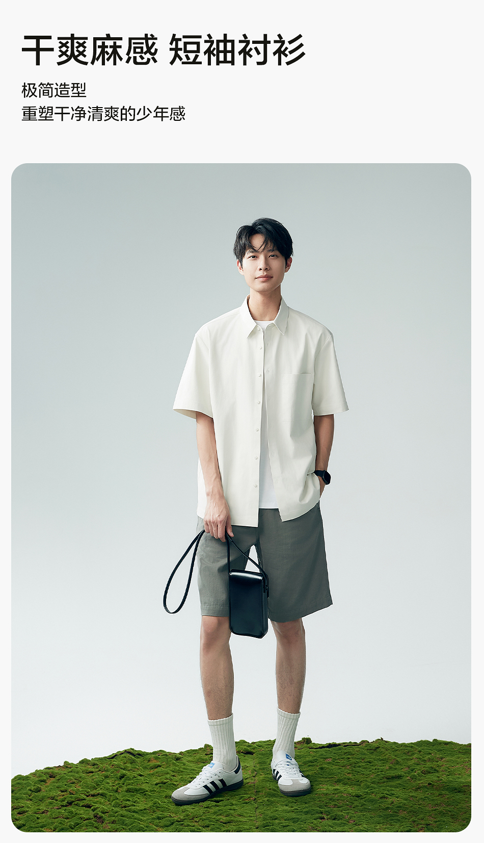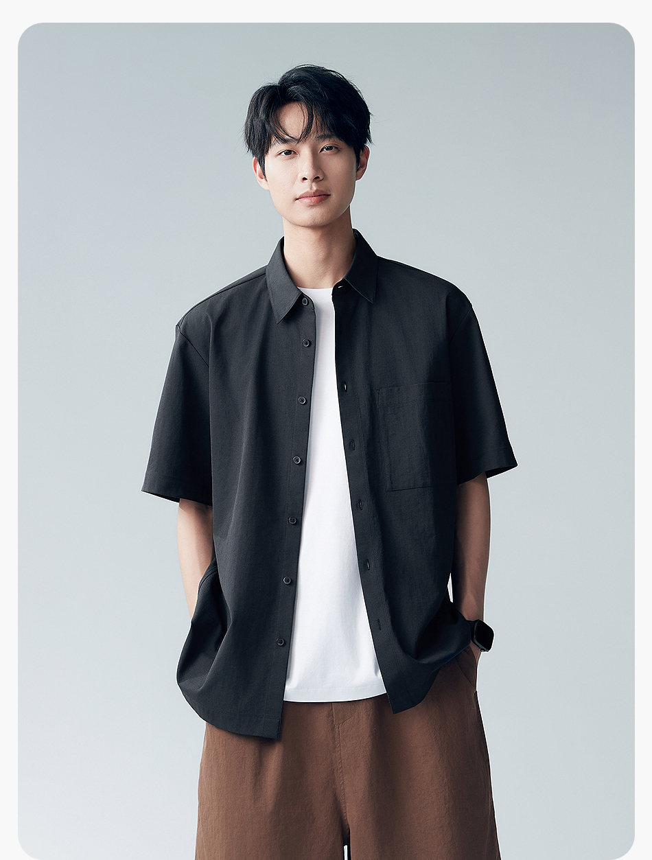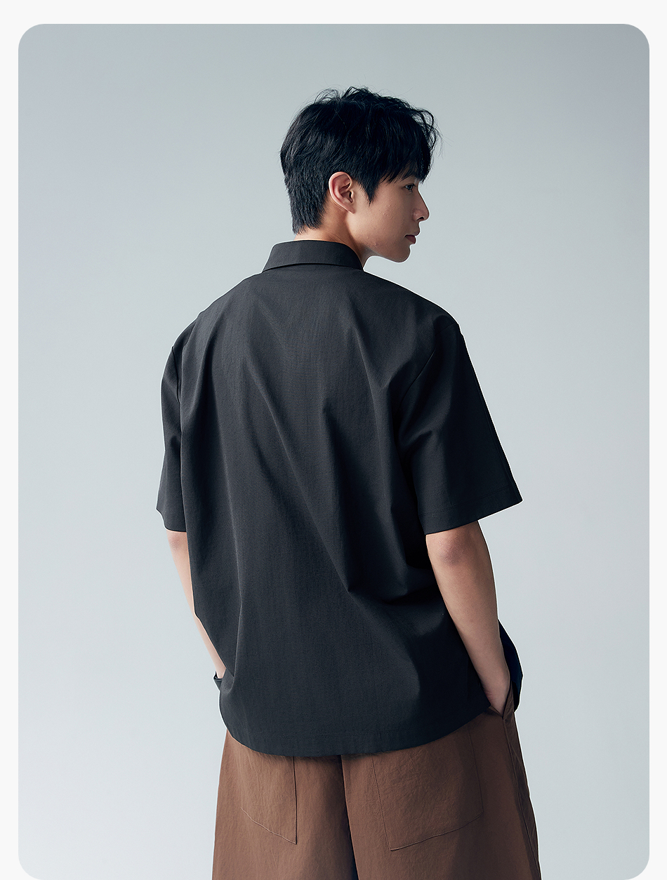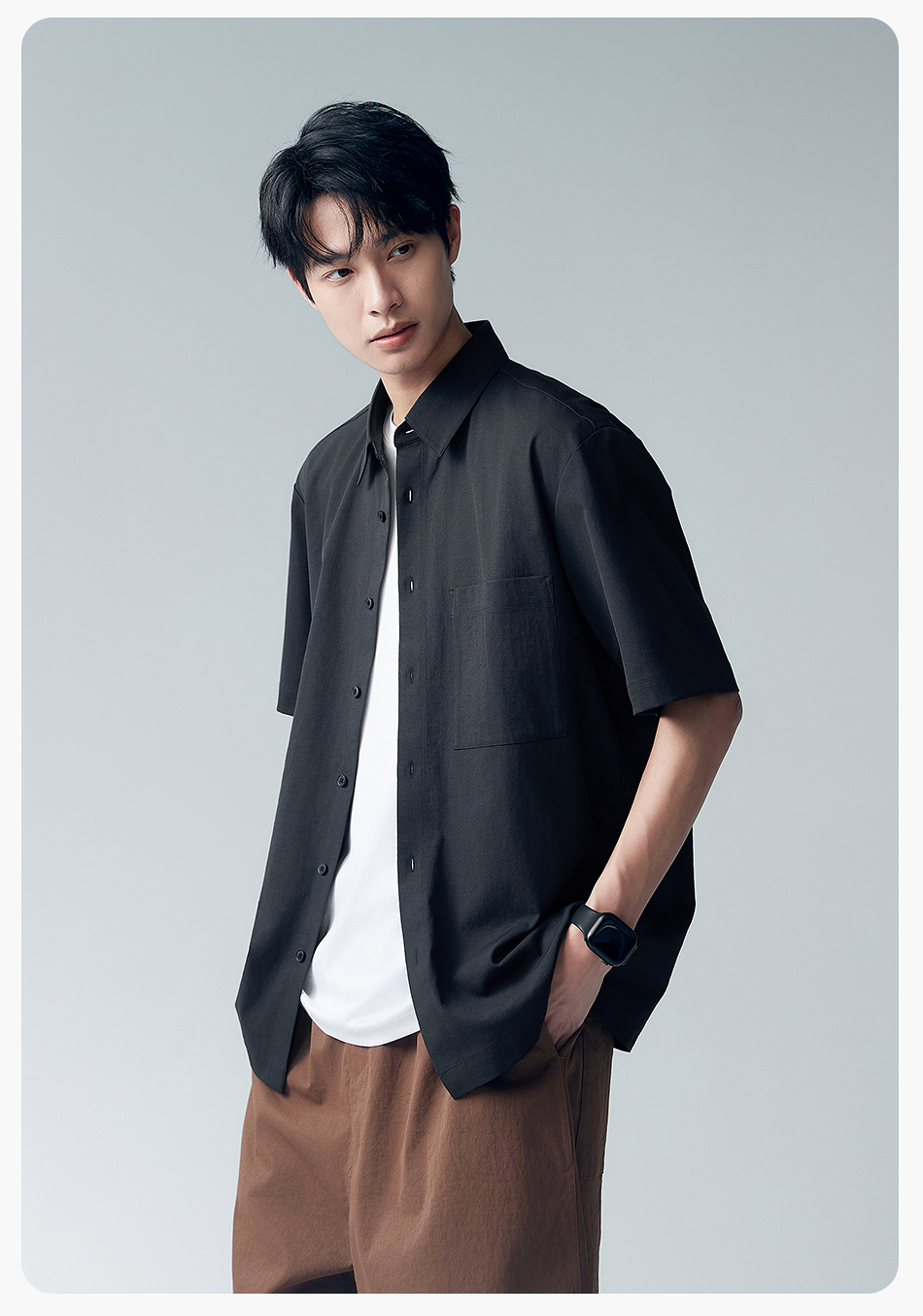 棉仓353804004-微宽松麻肌理翻领短袖衬衫