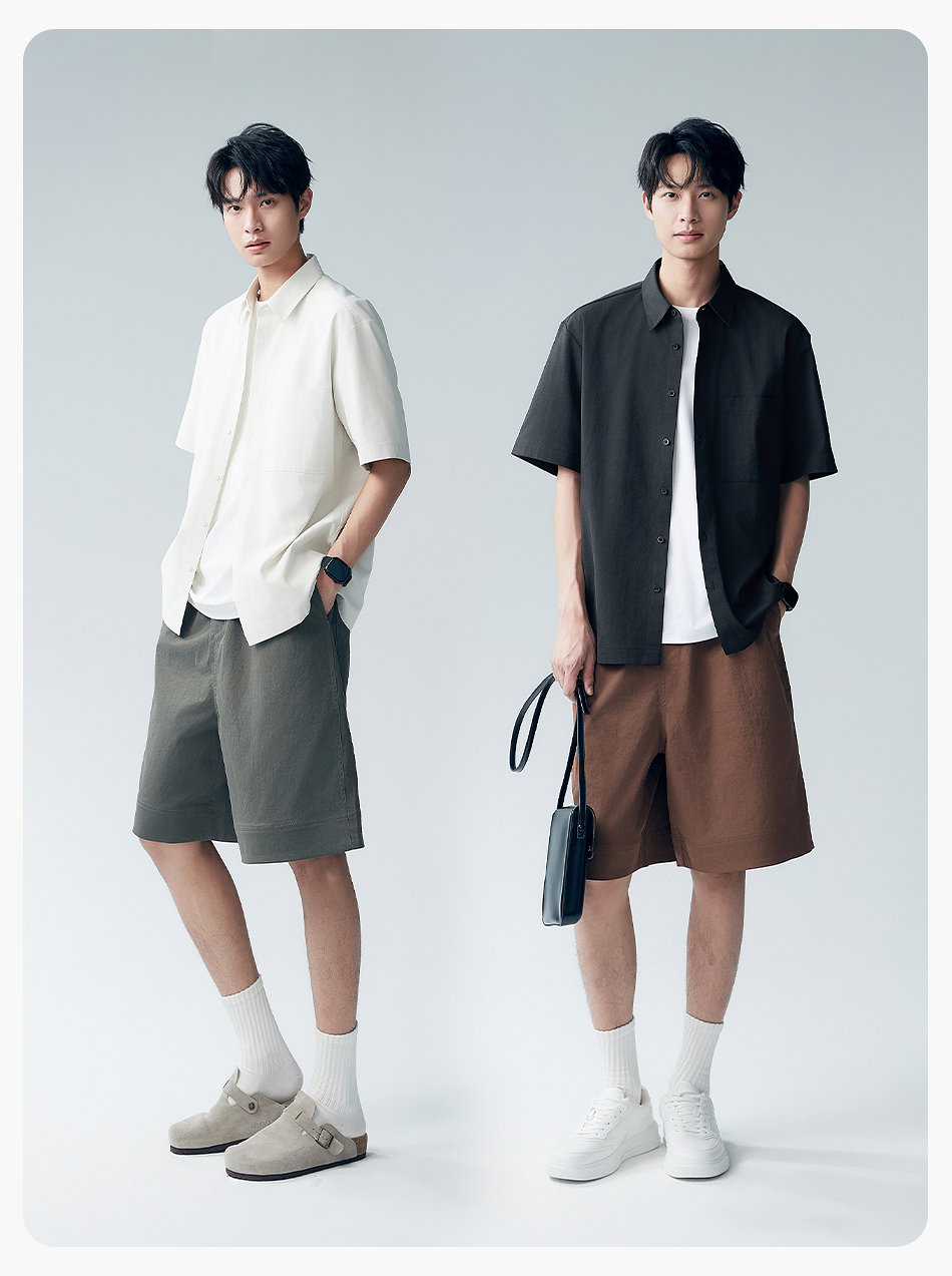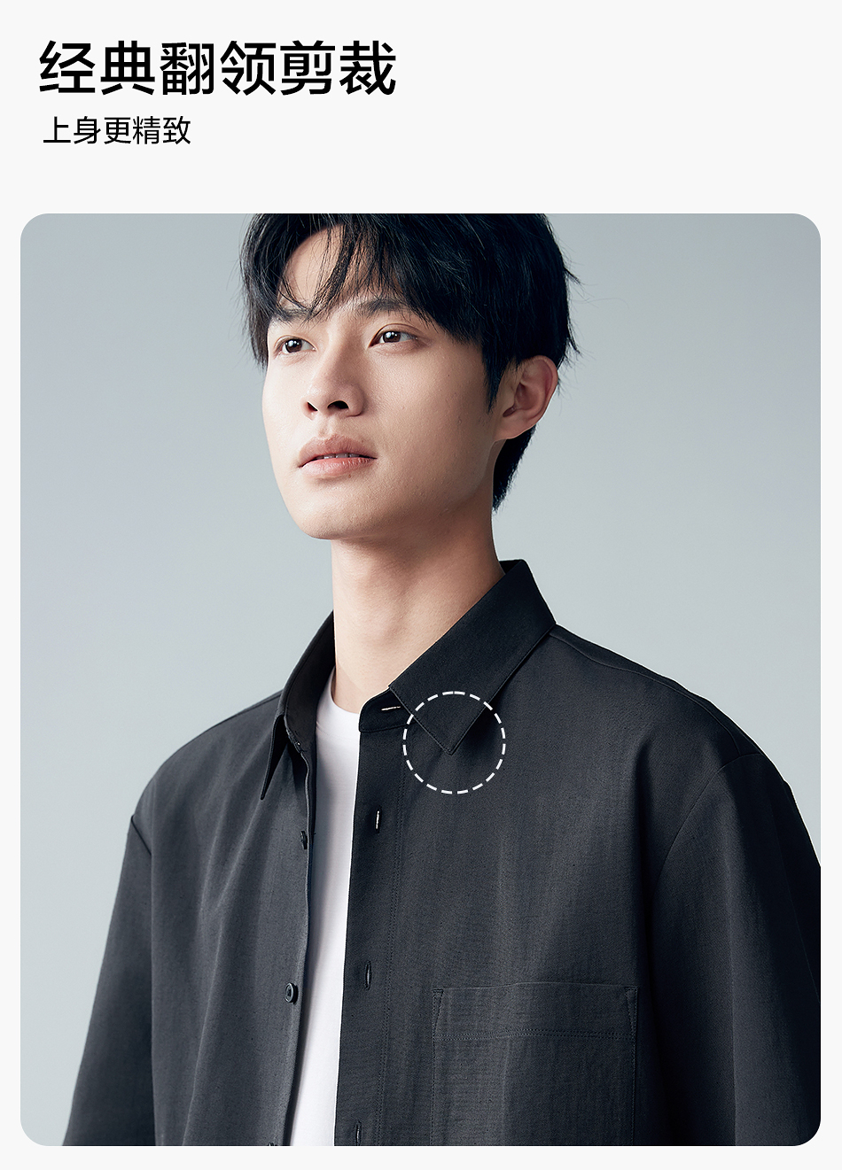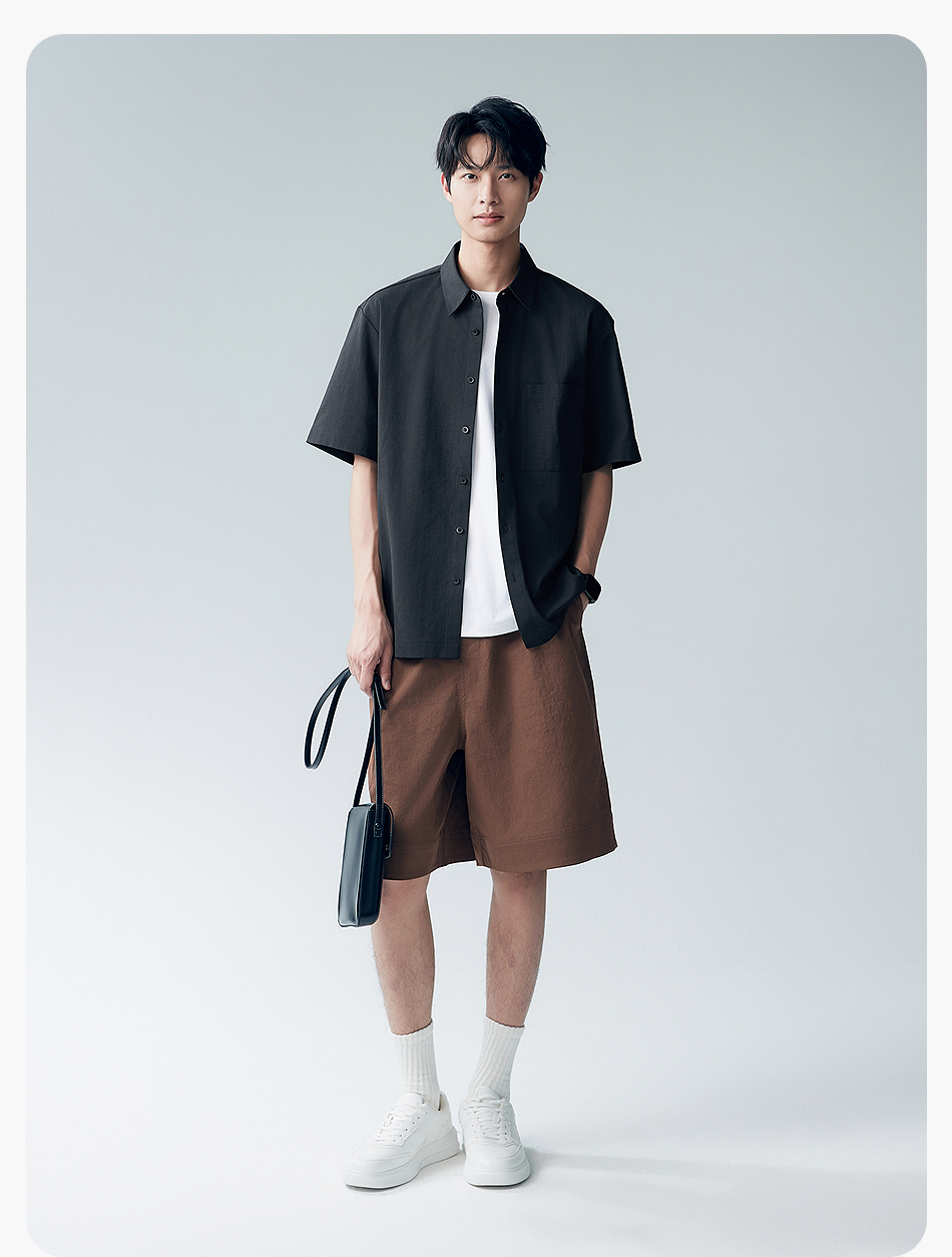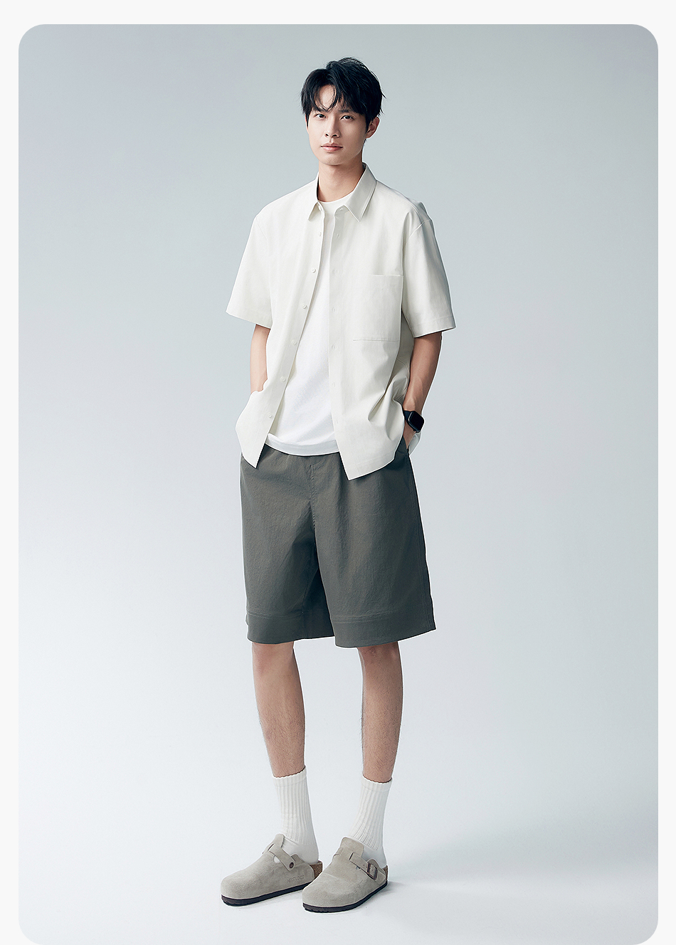 棉仓353804004-微宽松麻肌理翻领短袖衬衫