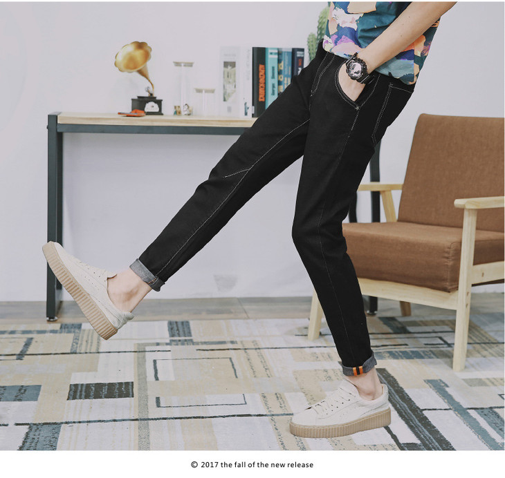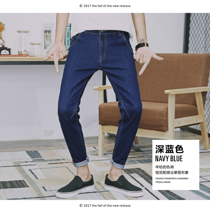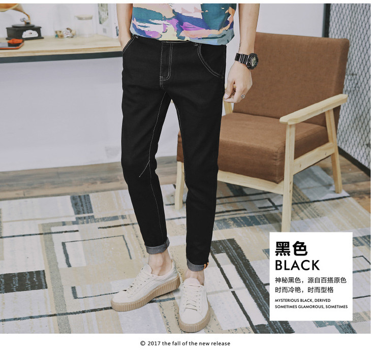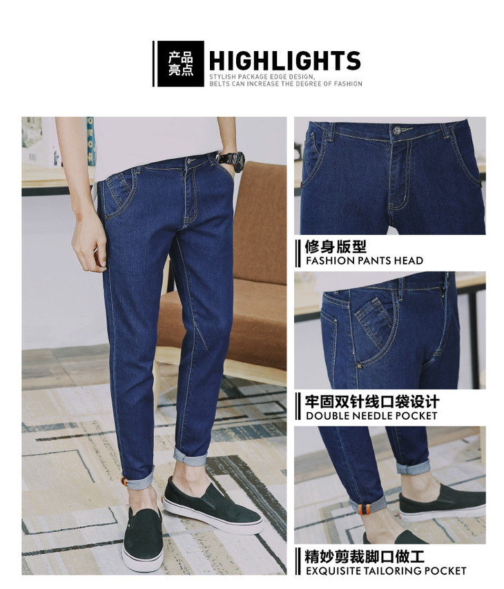 【服饰鞋包】春季男士新款小脚牛仔裤 男 韩版时尚修身牛仔九分裤休闲男裤