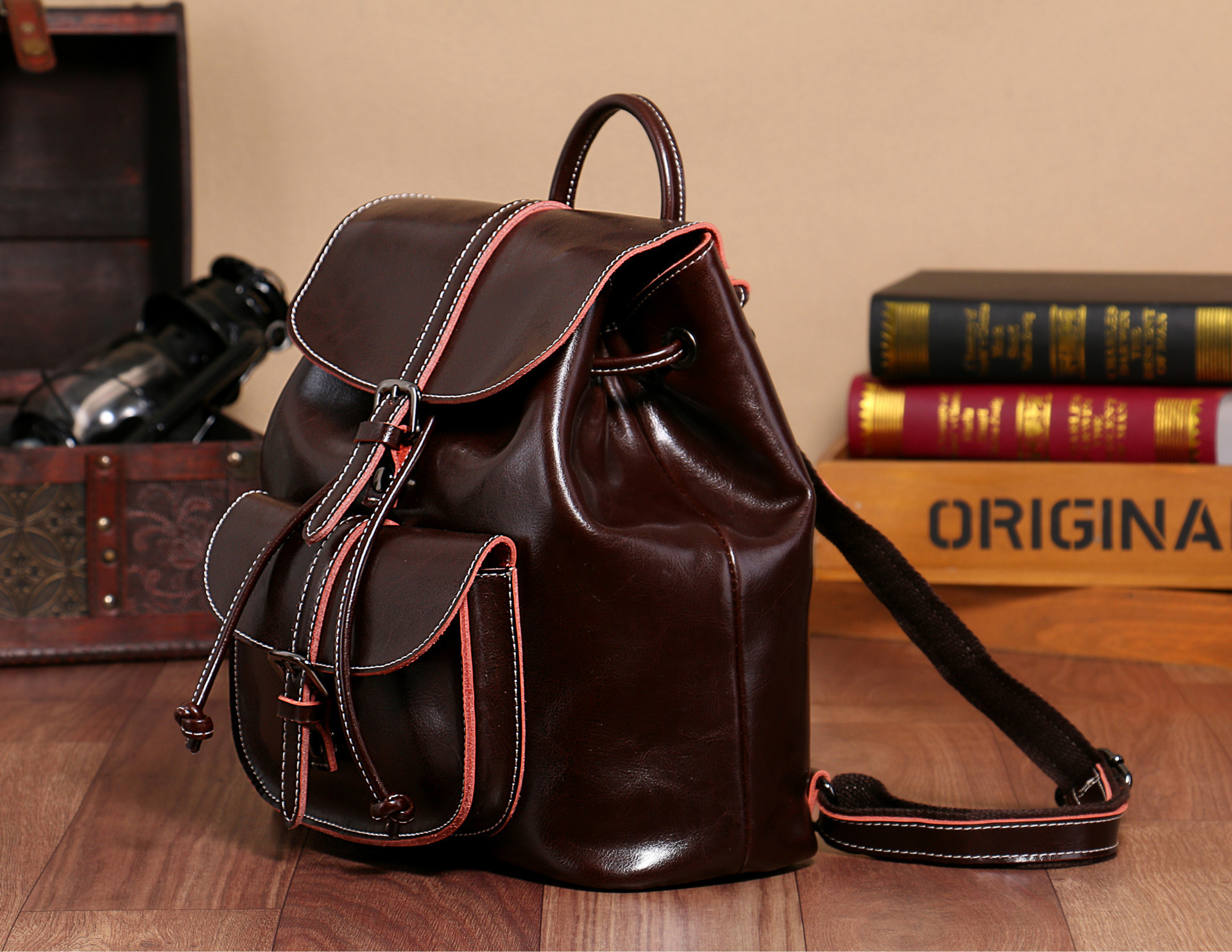 【预售3天】2025时尚双肩包抽带收口翻盖水桶韩版书包9912-D