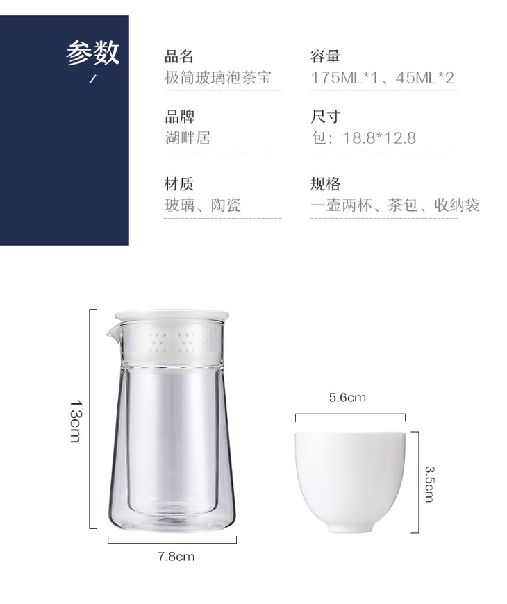 湖畔居丨极简玻璃泡茶宝 一壶两杯