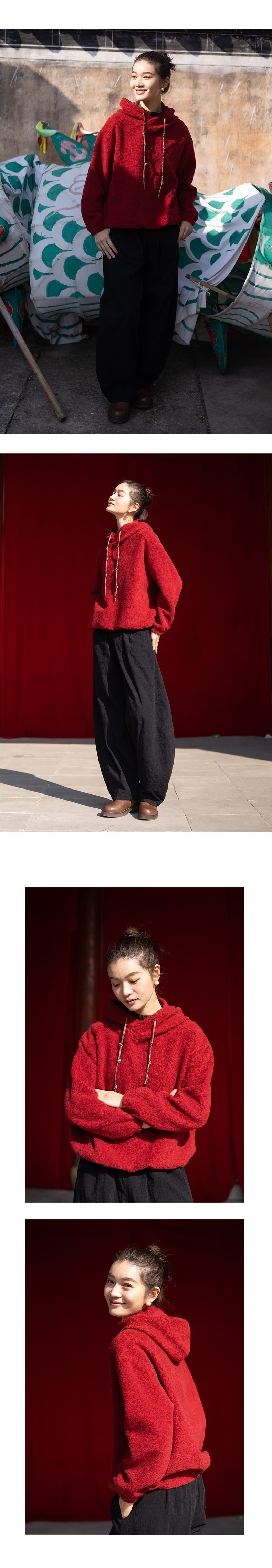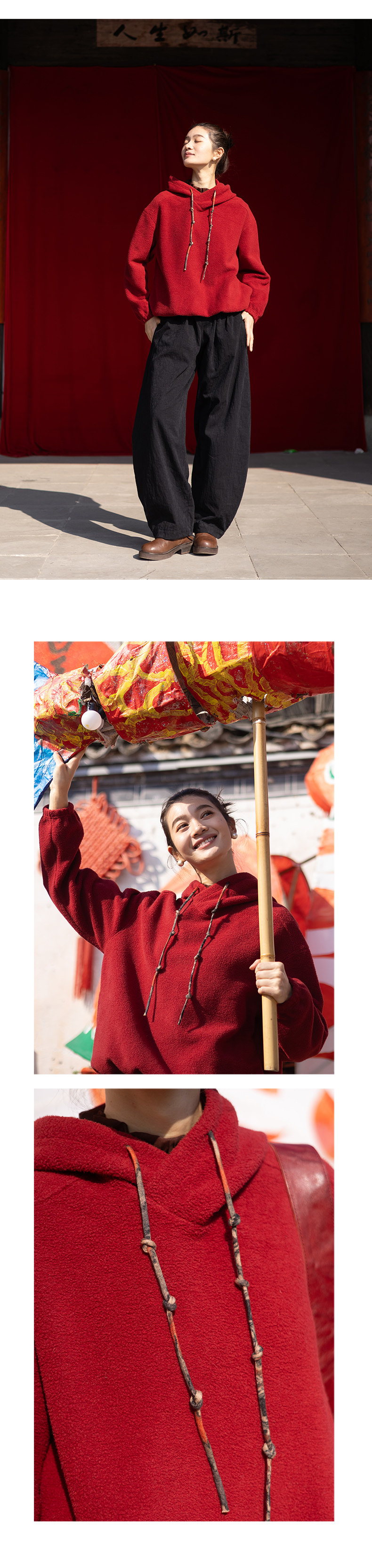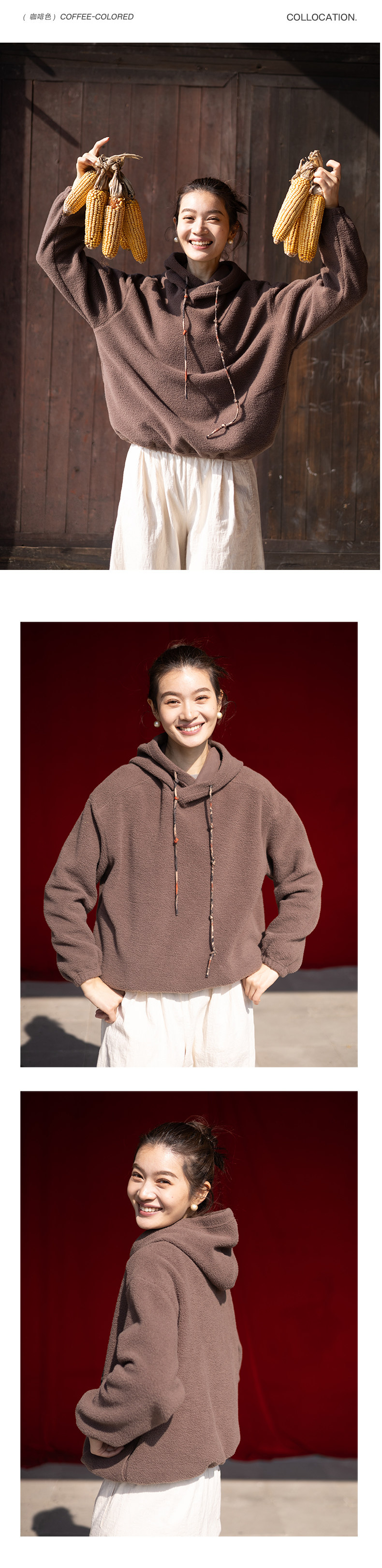 特绽放008朵/节节高升卫衣·节节高棉摇粒绒印花抽绳长袖连帽卫衣
