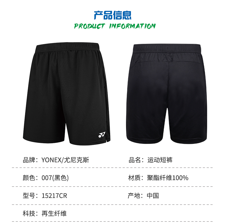 YONEX尤尼克斯羽毛球服国羽大赛款短裤15217CR球迷款 26164CR女款短裤运动速干