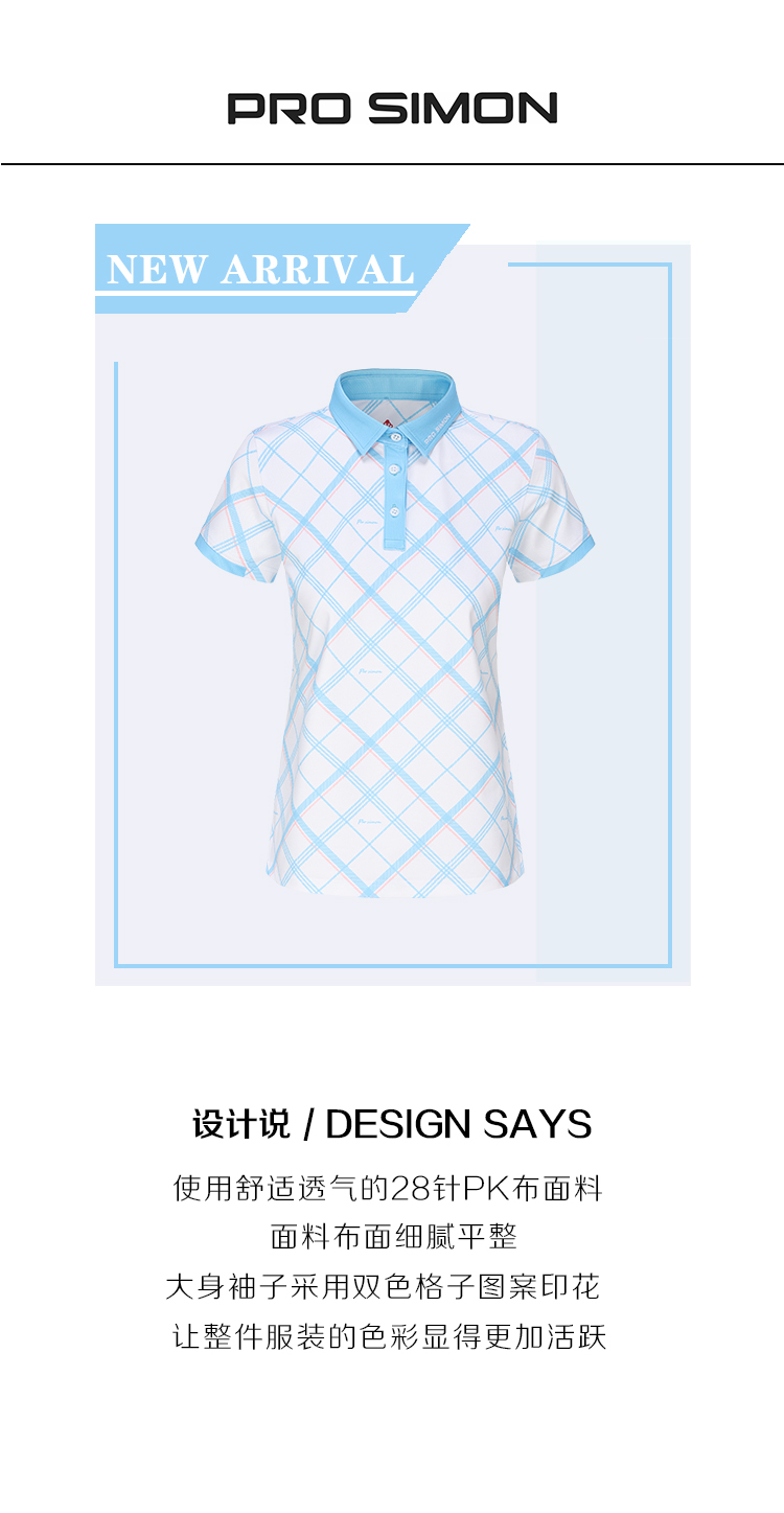 BNS-302B(PROSIMON高尔夫春夏女款格子印花短袖POLO衫T恤)