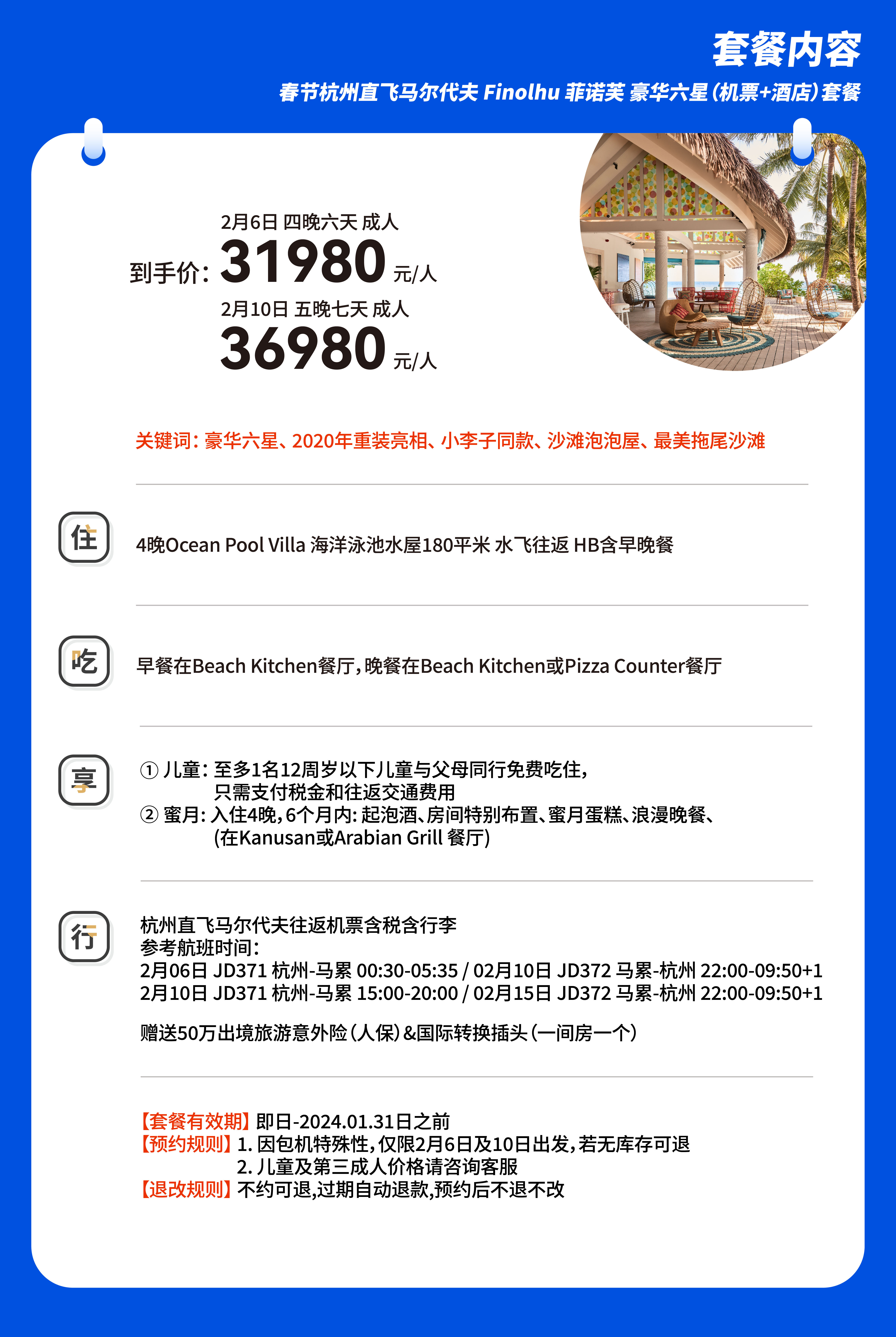 杭州直飞马尔代夫Finolfu豪华套餐
