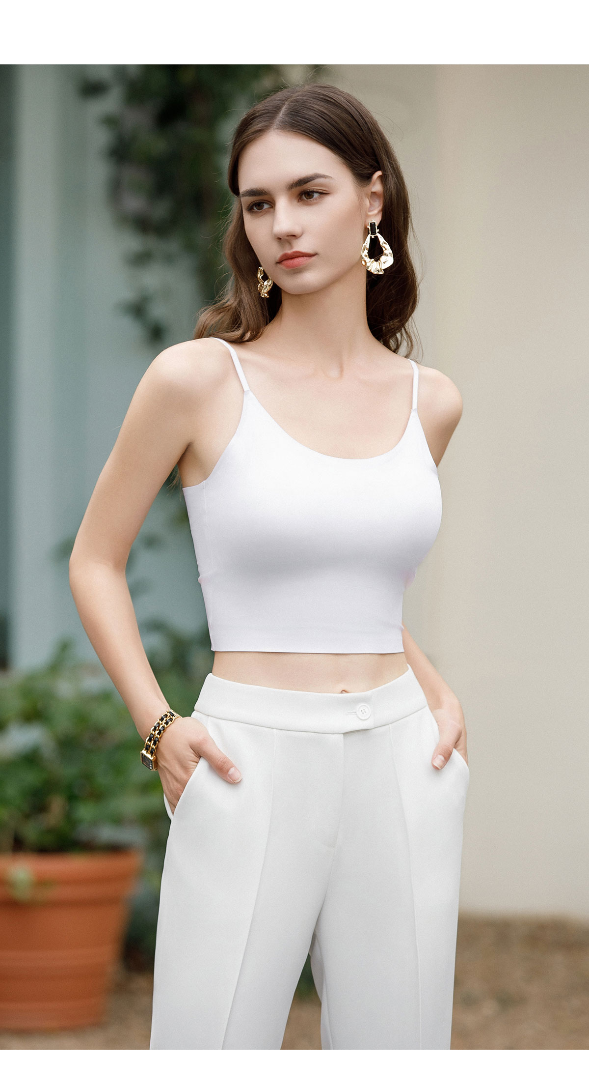 AD优雅时尚冰丝吊带背心女内搭夏季新款2024无痕美背U型打底上衣