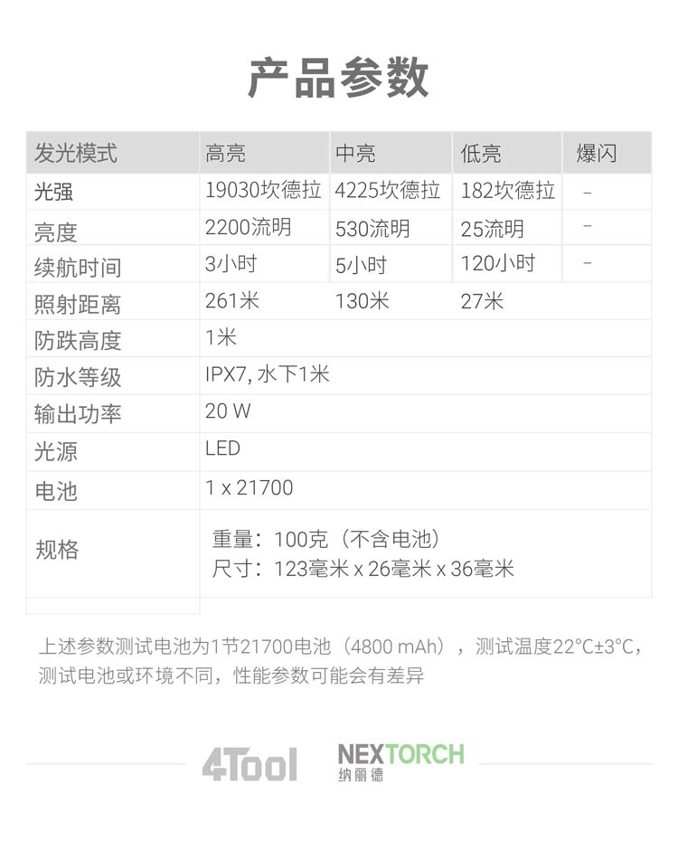 纳丽德(NEXTORCH)ED20手电筒日用随身EDC便携手电4Tool