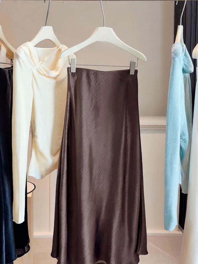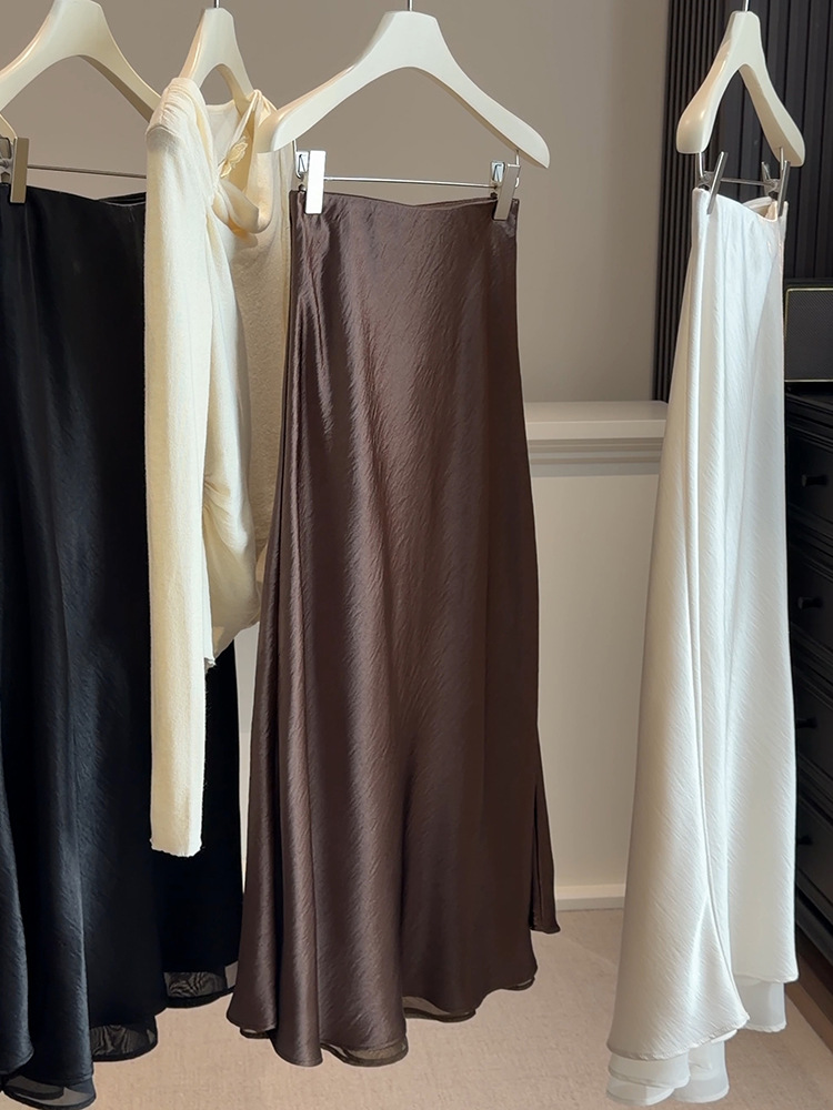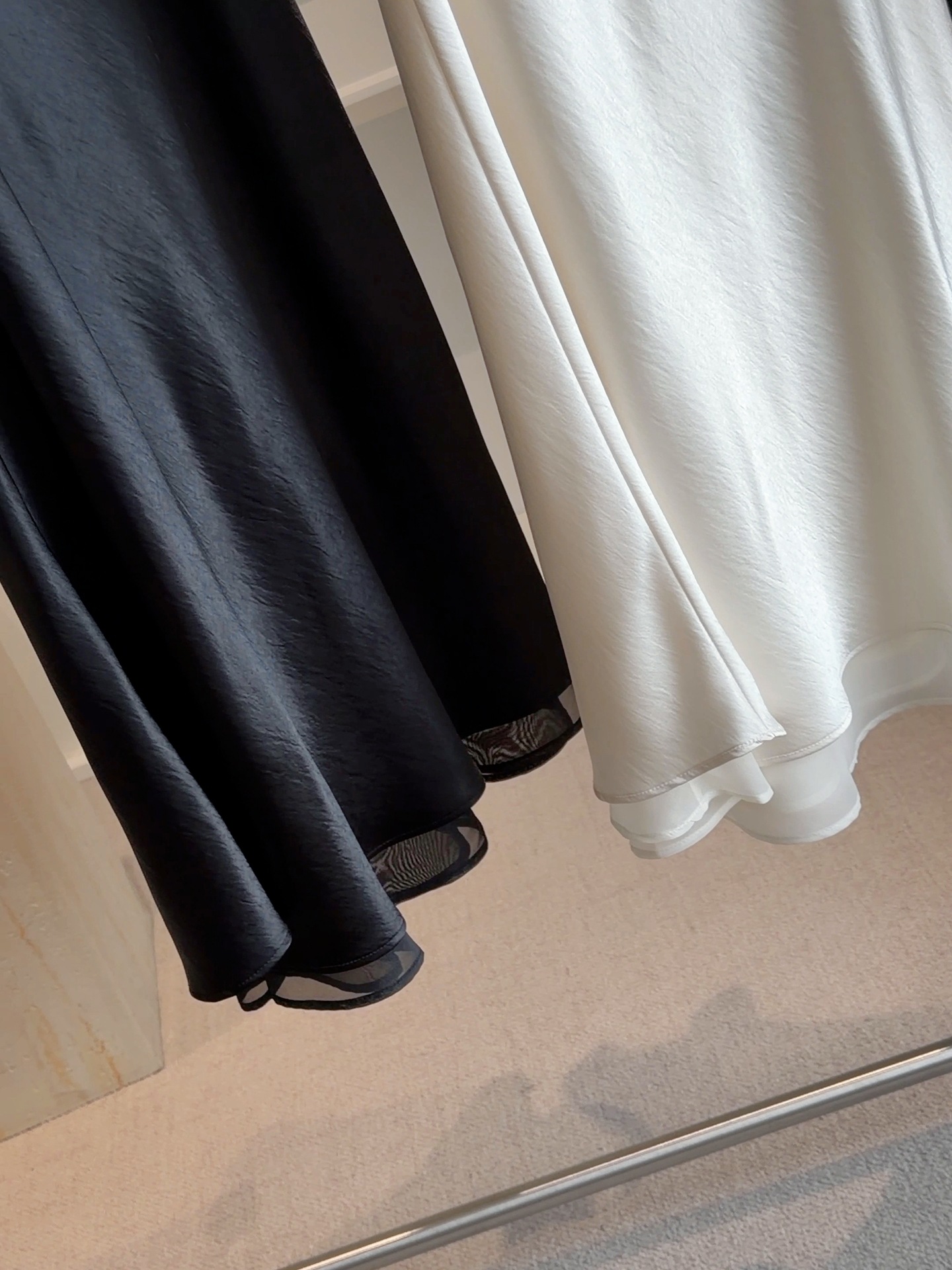 高级感!2026气质网纱拼接醋酸缎面鱼尾裙女春夏新款垂感高腰A字半身裙!