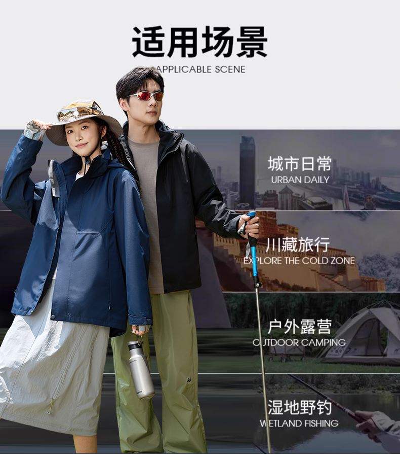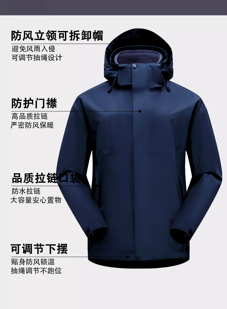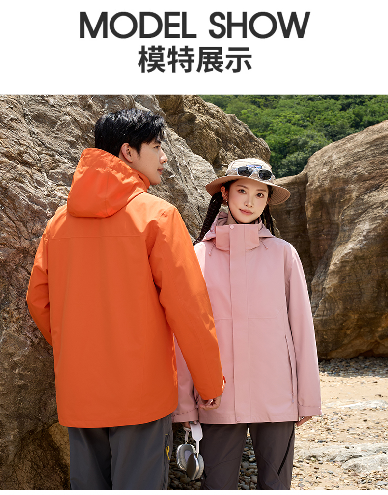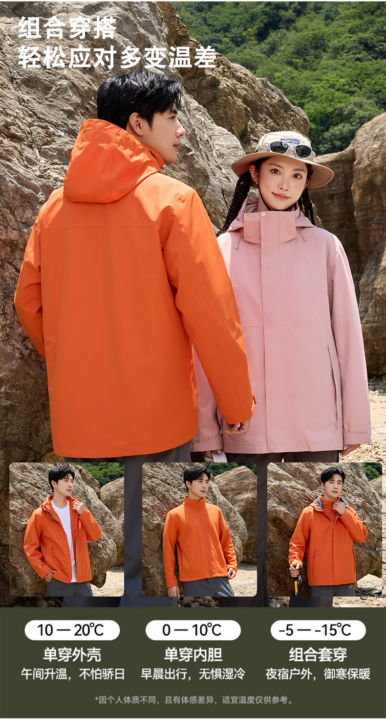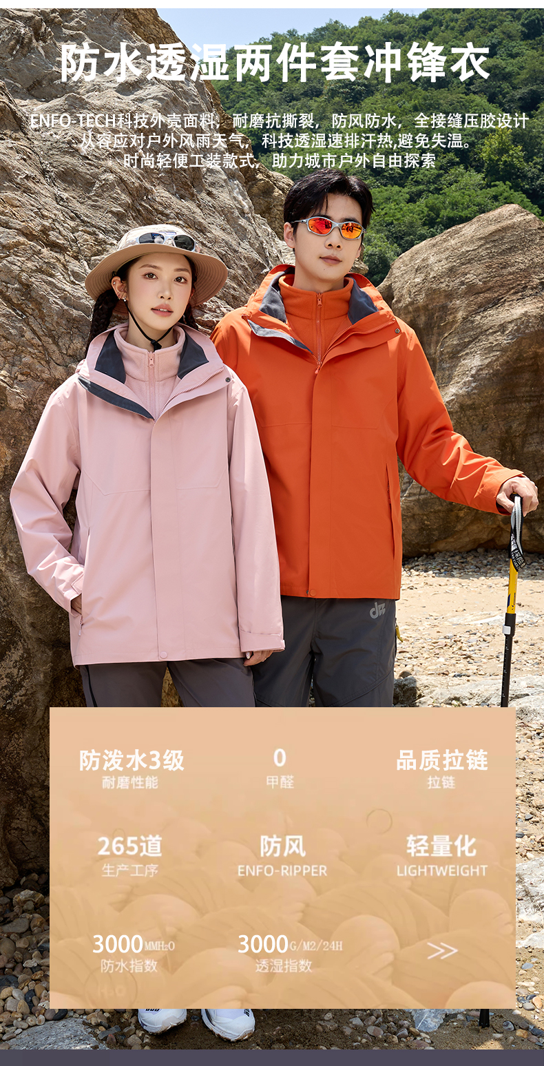 HOTDEMON户外运动登山露营男女情侣款4级防水防风保暖三合一冲锋衣6688