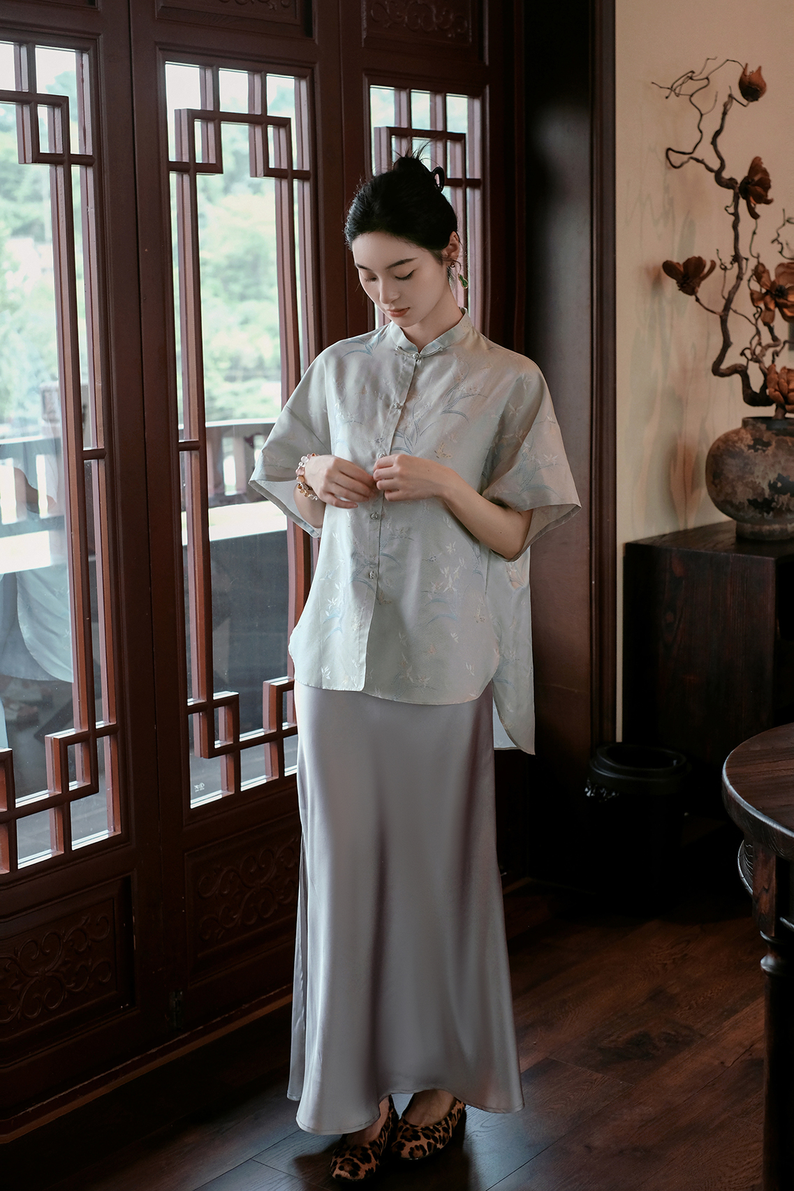 盛唐婧 |淡翠绿国风提花上衣[特价品]