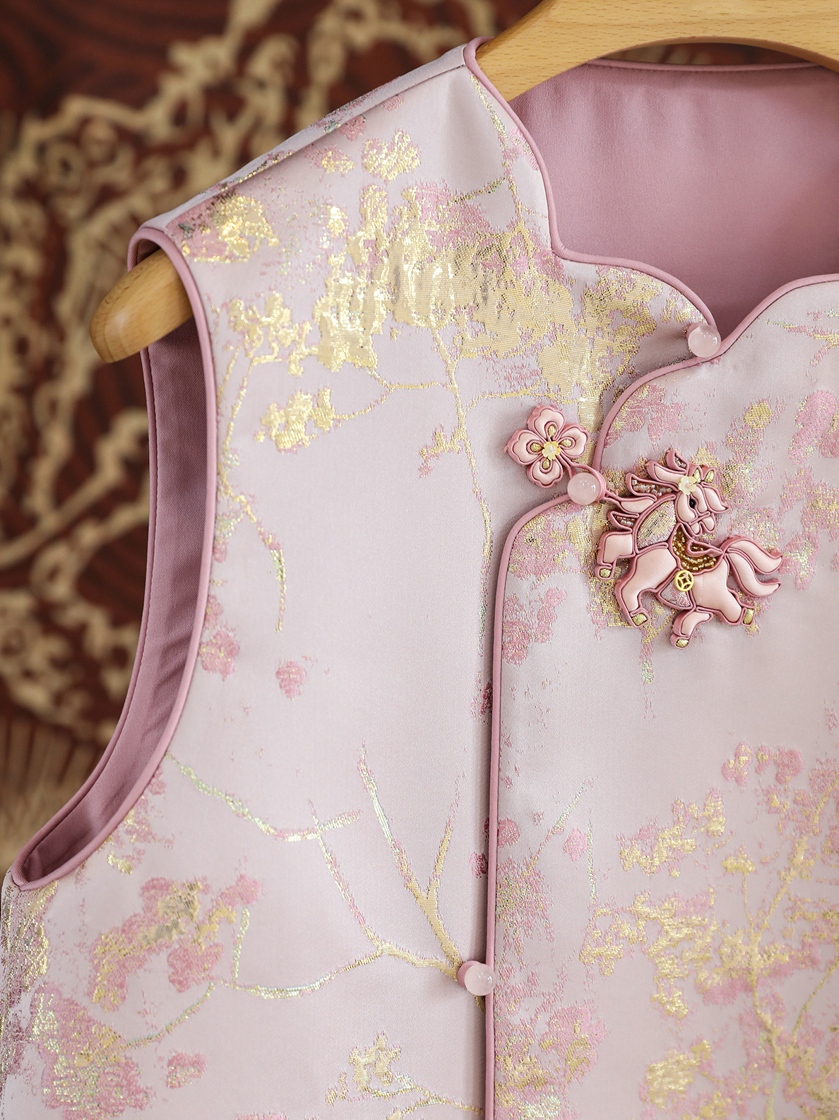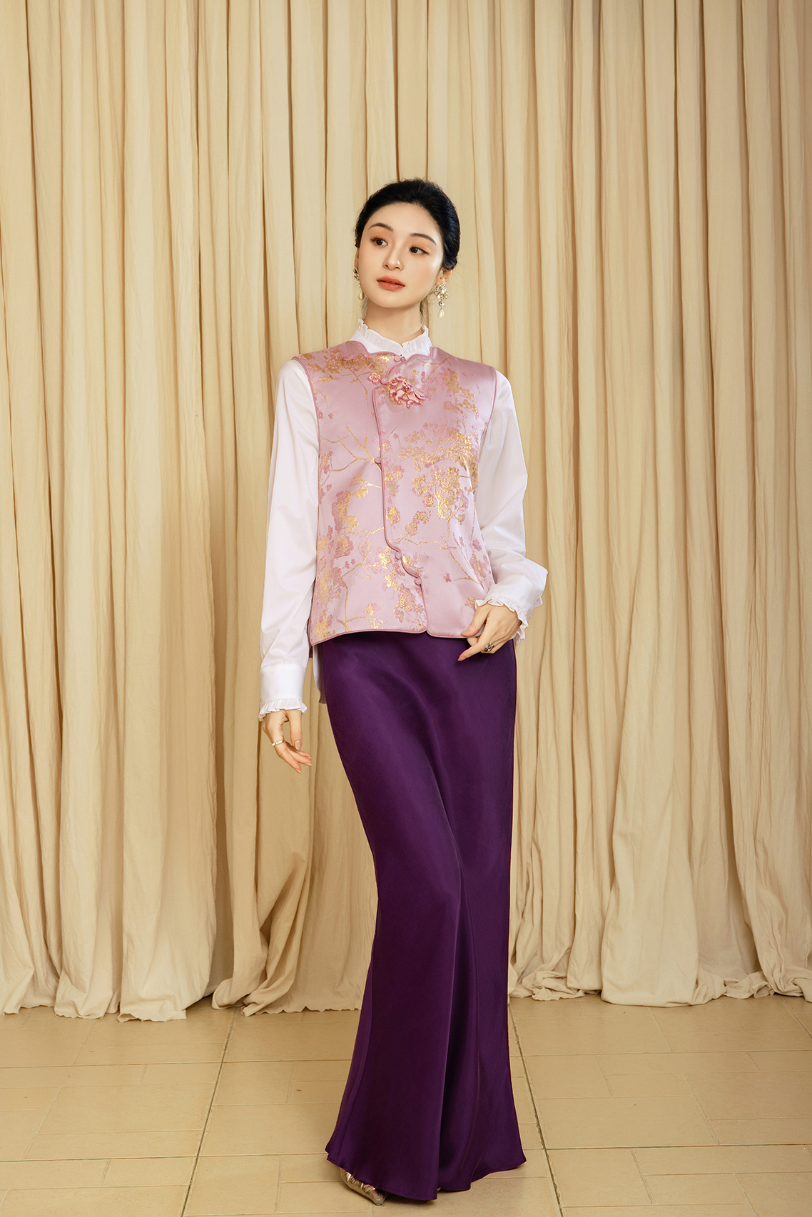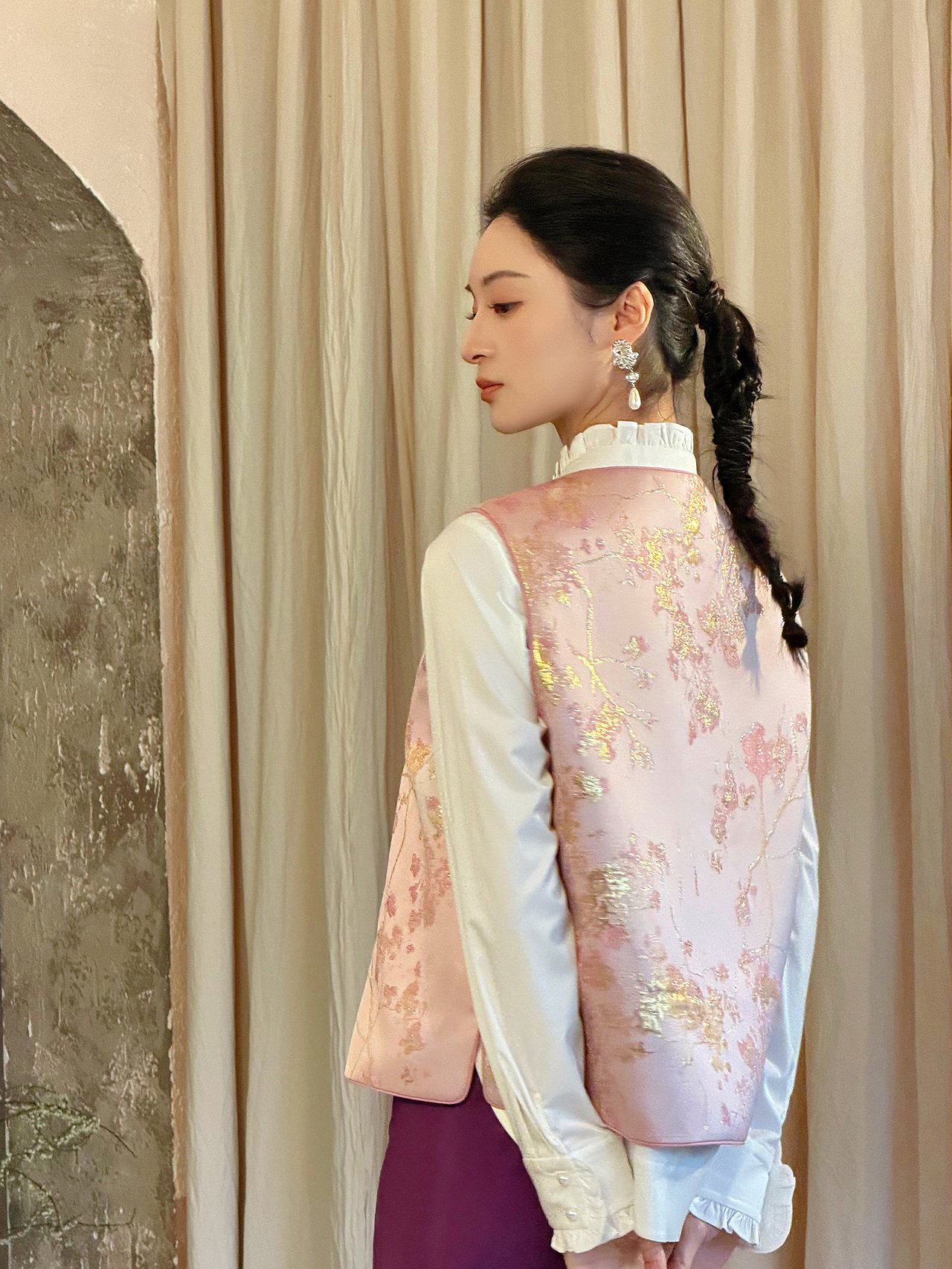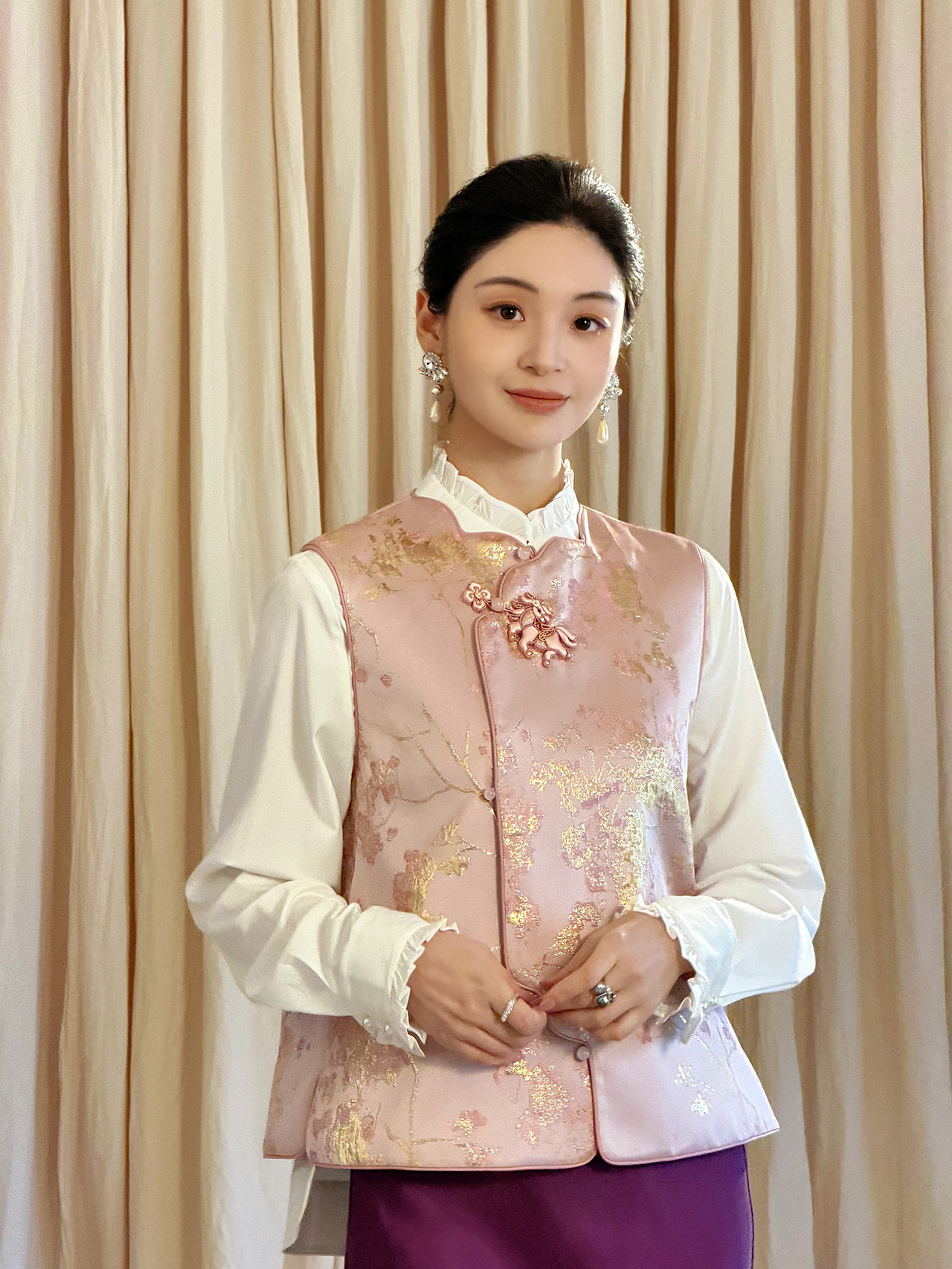盛唐牡丹 |真丝提花立领马甲 (不夹棉)