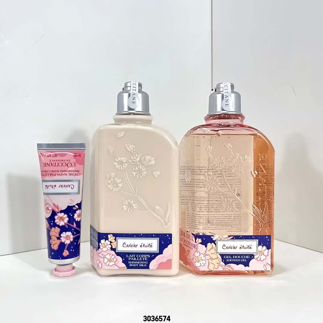 ( 欧舒丹星河夜樱三件套 ) 3036574编码!可配海免3标❗️配礼袋❗️欧舒丹星河夜樱三件套 星河沐浴露250ml 星河身体乳250ml 星河护手霜30ml 配礼袋。