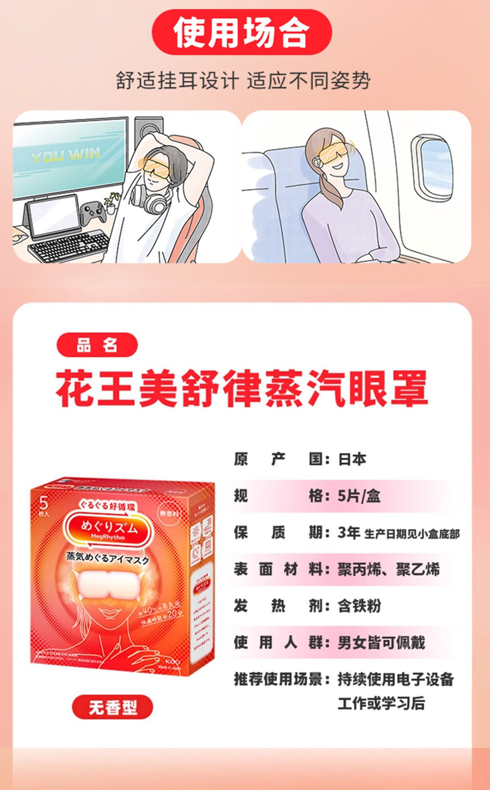 日本花王蒸汽眼罩5片装无香味
