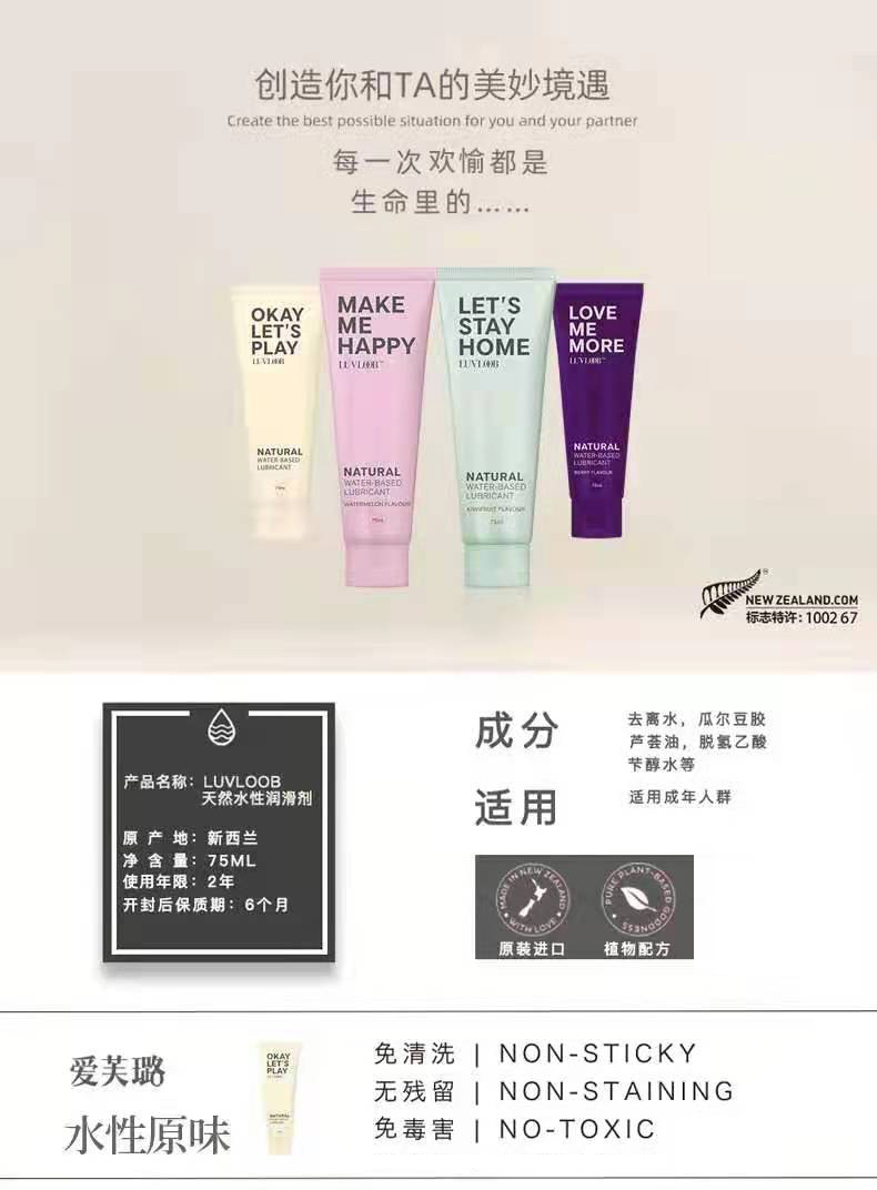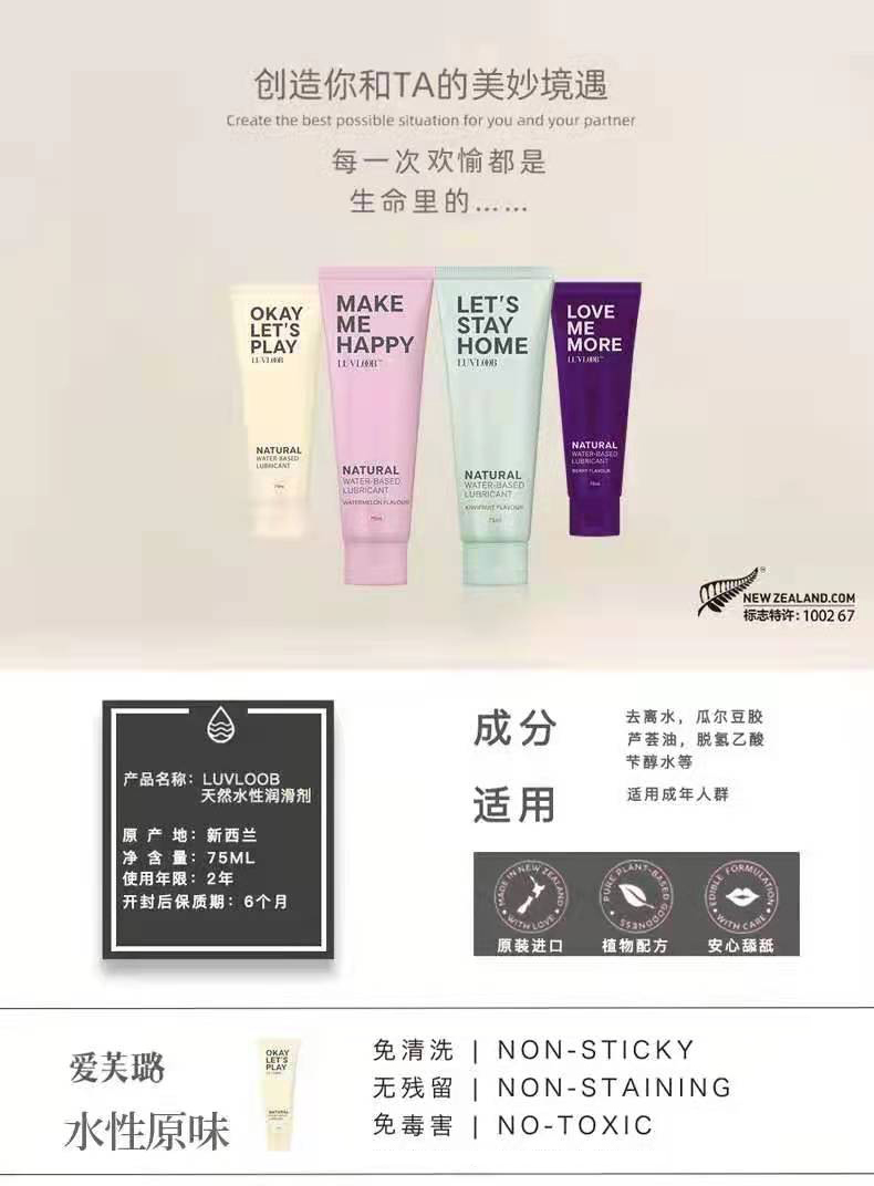 爱芙璐LUVLOOB新西兰原装进口 天然无甘油免洗润滑液