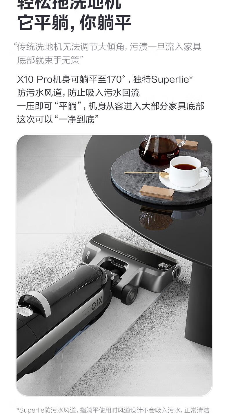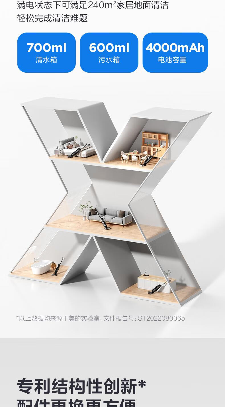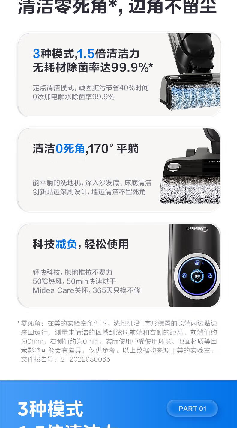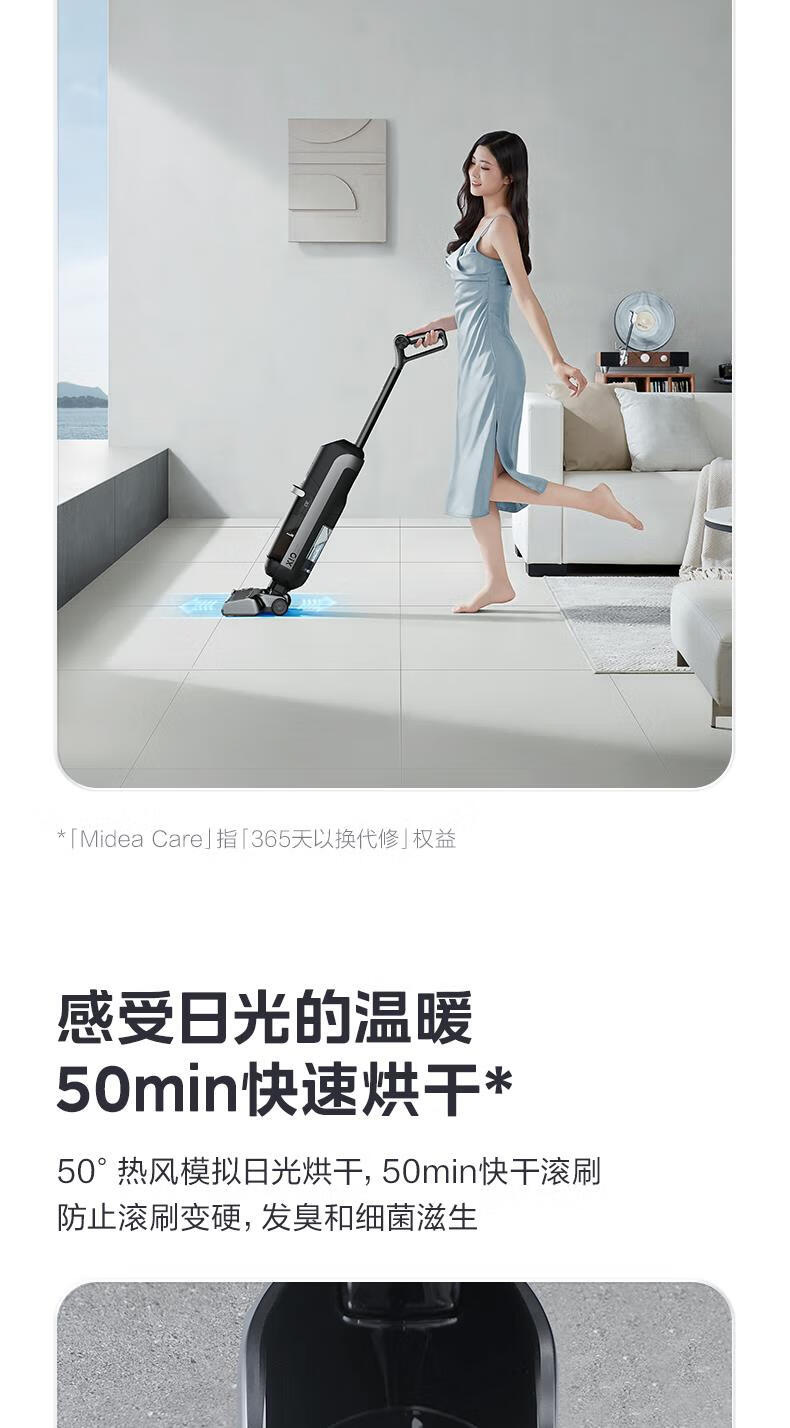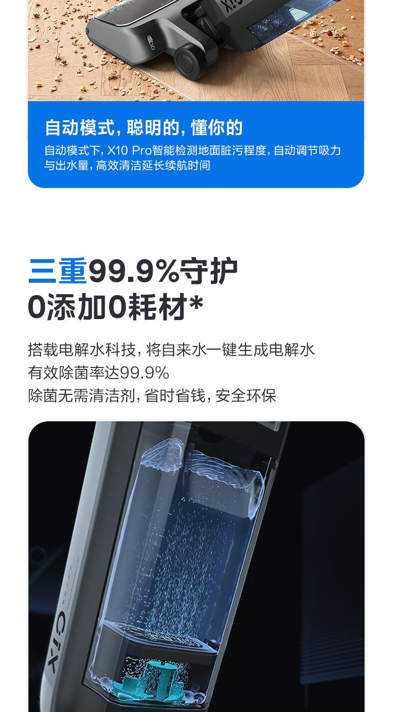 美的(Midea)家用洗地机吸拖洗烘一体智能0边距沿边清扫电解水除菌X10pro(线下同款)