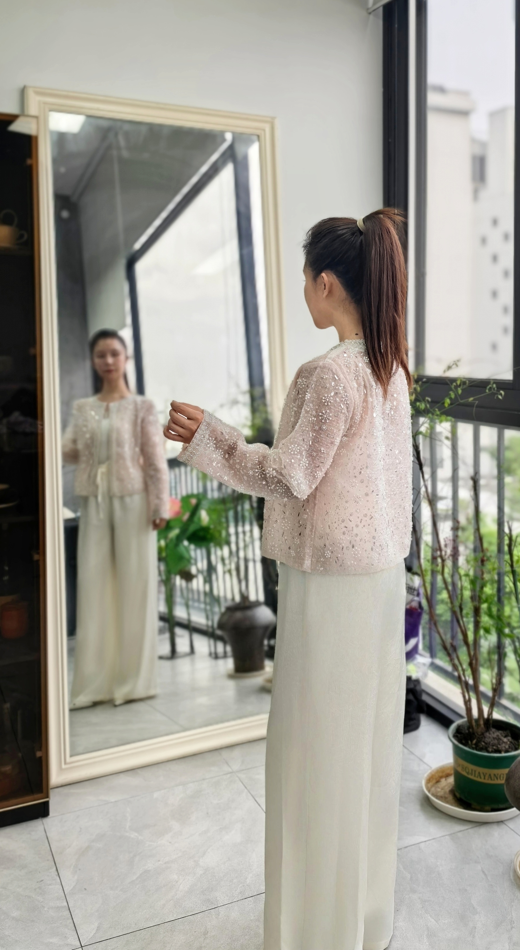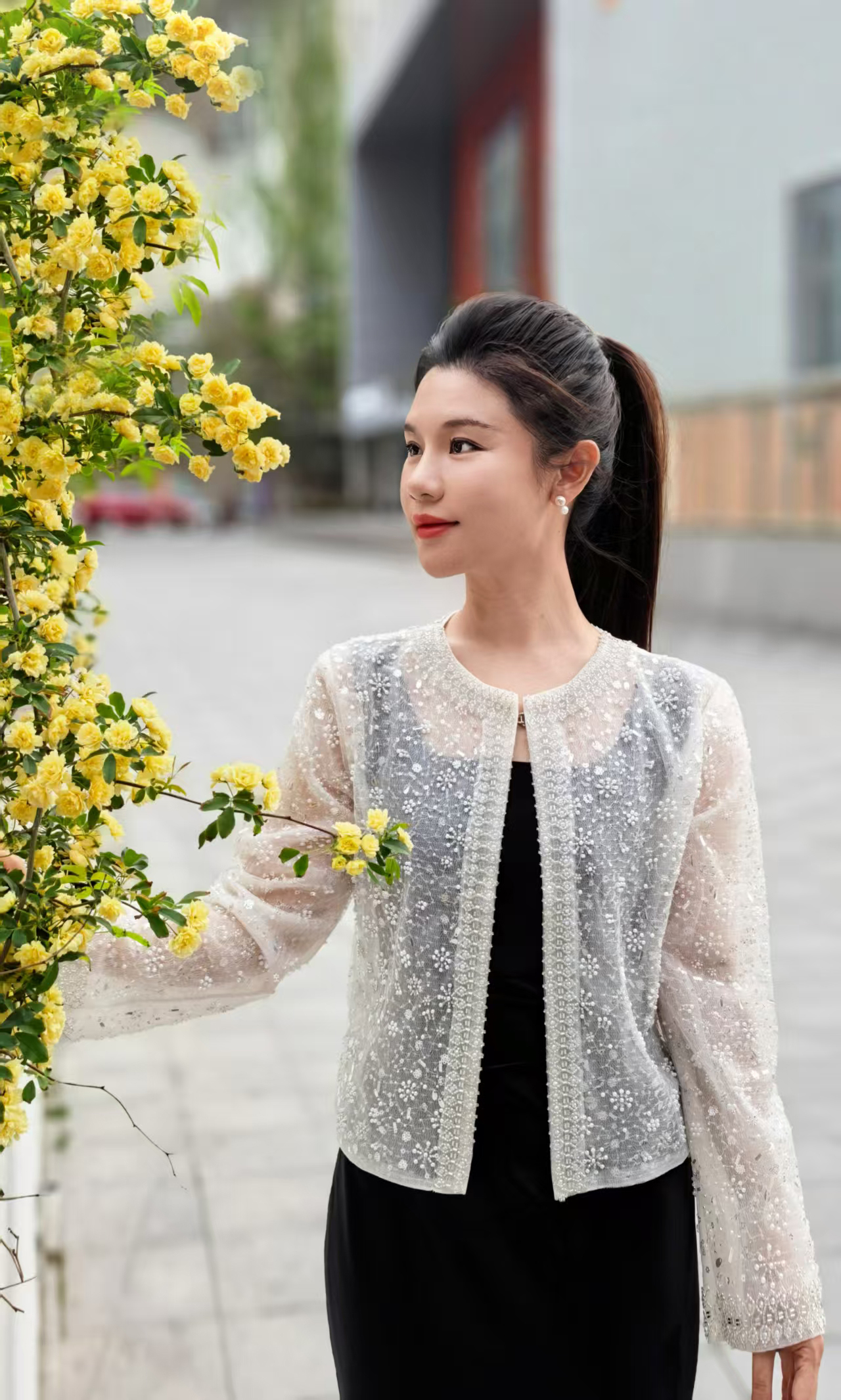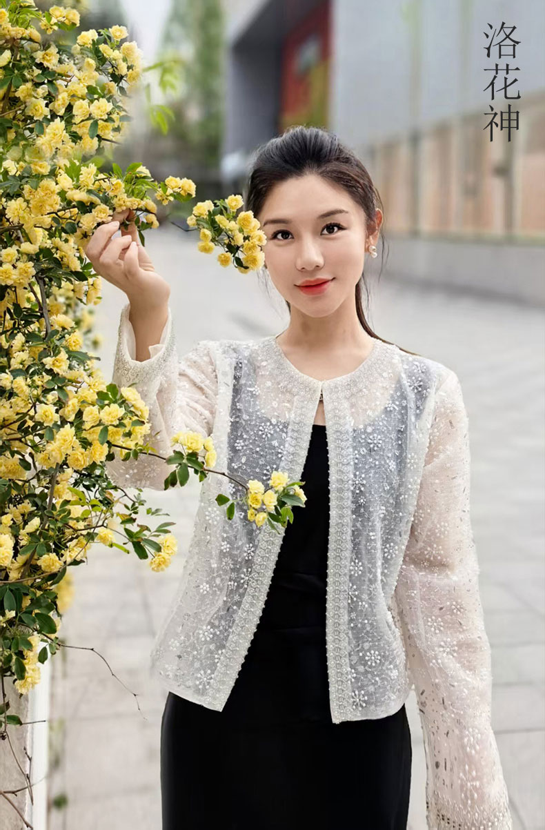 逸红颜明月优选#爆闪的新中式外套「洛花神」重磅高定系列,非遗亮片钉珠工艺,美得移不开眼~