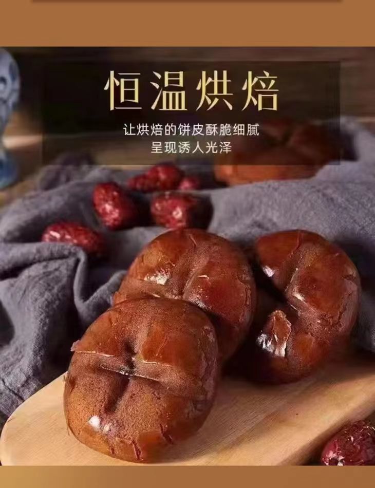 枣沙饼采用非遗技艺,严格传承古法,历经24道精湛工艺。其馅料用的是乐陵的金丝小枣,细心研磨成细腻枣泥,再融入鸡蛋与绵白糖精心熬制,饼中枣泥含量高达58%,鸡蛋含量也达到了21%,确保了枣沙饼醇香不腻,口感劲道,每一口都能品尝到浓郁的枣香与蛋香。而饼皮的制作更是别具匠心,纯净水和红枣,经过长达45天的转化熟成,再巧妙融入饼皮之中,绵软香甜,即使久放也能保持松软不硬。全程无添加任何防腐剂、色素及香精,非常适合与家人朋友共享,让爱与美味同在。