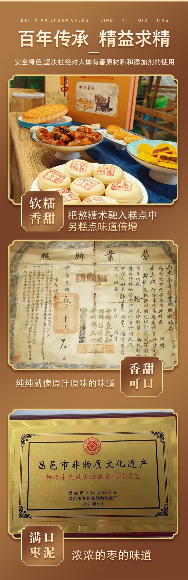 榴小满的枣沙饼,源自1918年经典之作,承载着百年匠心与传承的精髓。榴小满糕点技艺,其根源可追溯至明清时期,历经民国时期的磨砺,最终在20世纪初期迎来了显著的发展。韩氏家族中的韩洪尧,以勤劳与踏实著称,对糕点技艺的追求达到了精益求精的境界。他遍访各界大师,汲取精华,创作出了众多美味可口的糕点,赢得了广泛的赞誉,迅速在当地市场上崭露头角,占据了一席之地。时至今日,榴小满作为家族传承的百年老字号,始终秉持着安全绿色、卫生健康的经营理念,坚决抵制任何对人体有害的原材料和添加剂使用。公司坚持质量至上,以诚信赢得市场,并成功获得了非物质文化遗产的资质认证。榴小满致力于将每一块糕点都赋予灵魂,让这份美食能够经受住岁月的考验,成为一代又一代人心中难以忘怀的美味记忆。