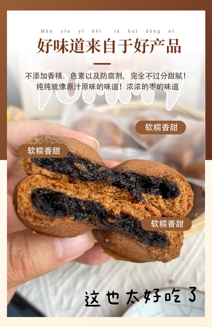又挖到了好吃的红枣小零食啦!非遗手作,有满满的枣馅,金丝小枣添加量大于58%,鸡蛋含量也有21%,入口枣香浓郁,微甜不腻,爱枣星人不要错过!