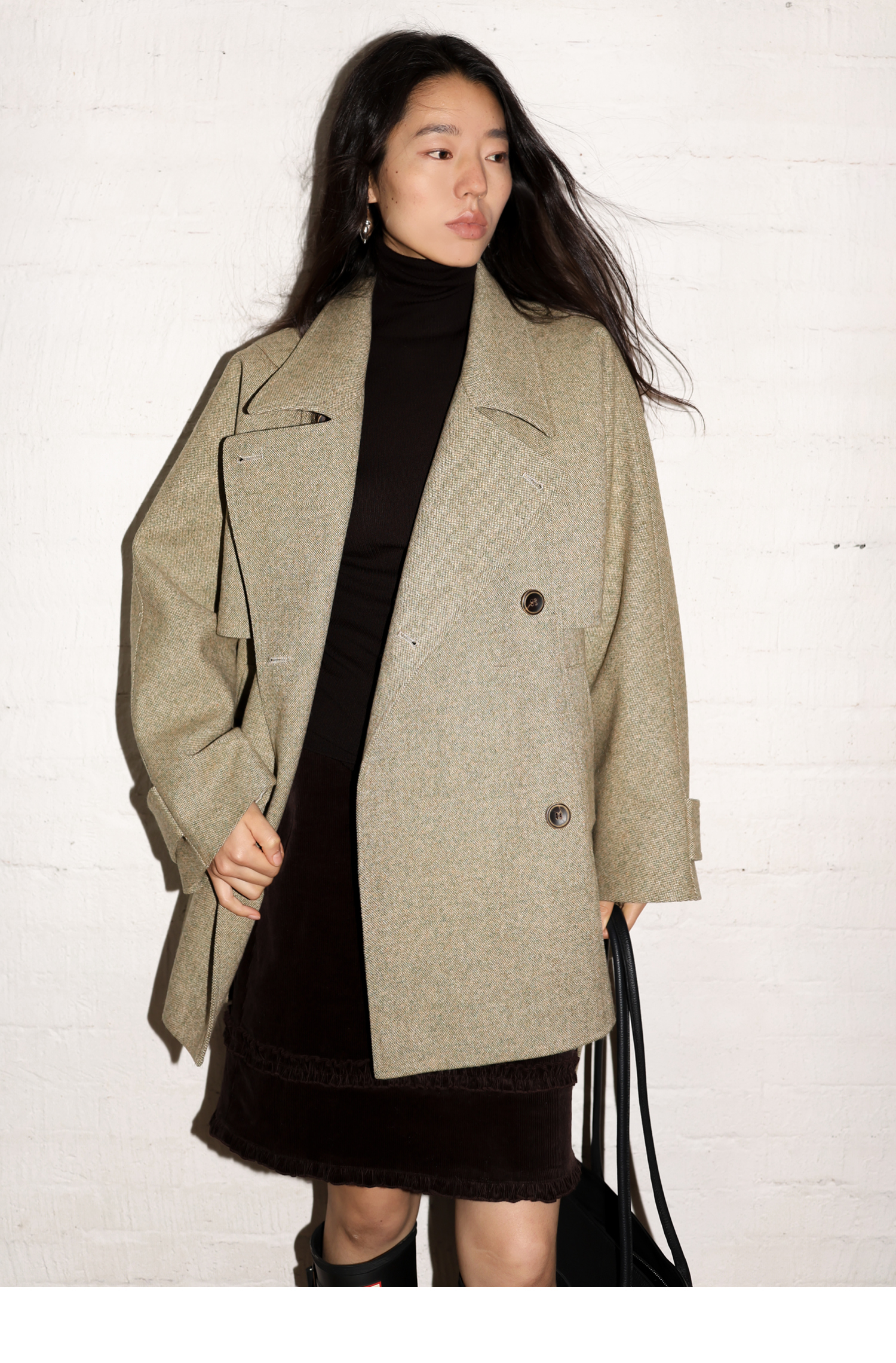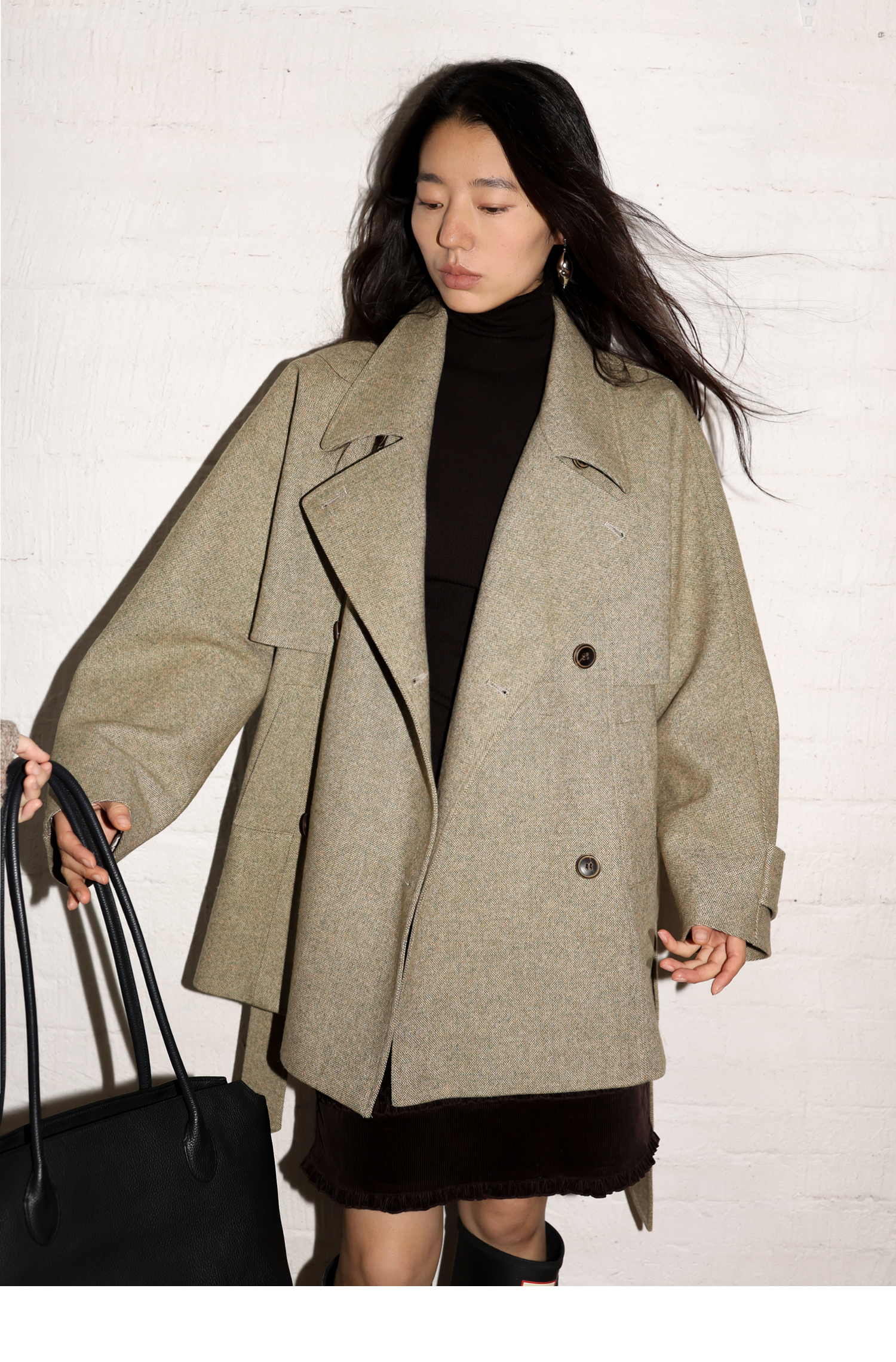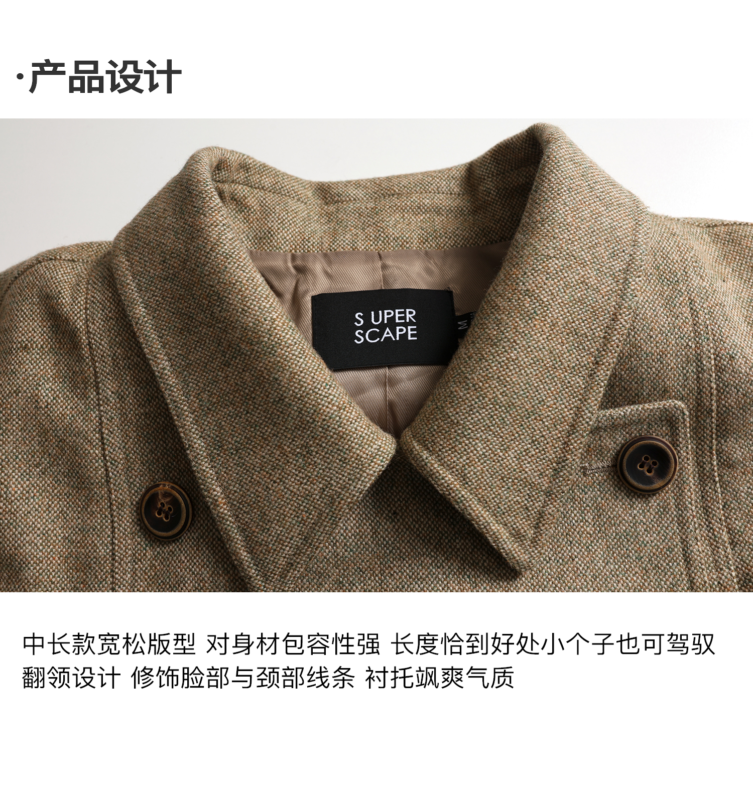 素舶 绵羊毛风衣式呢子外套英伦风气质通勤中长款毛呢大衣外套