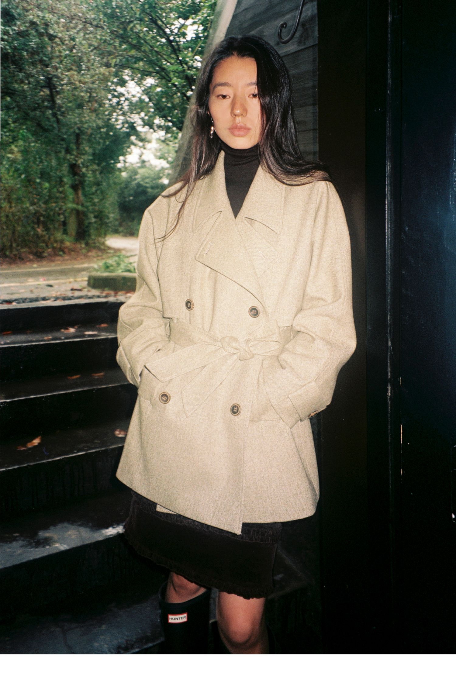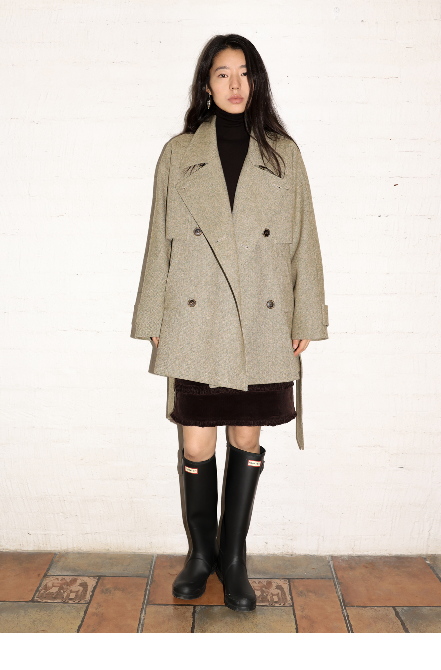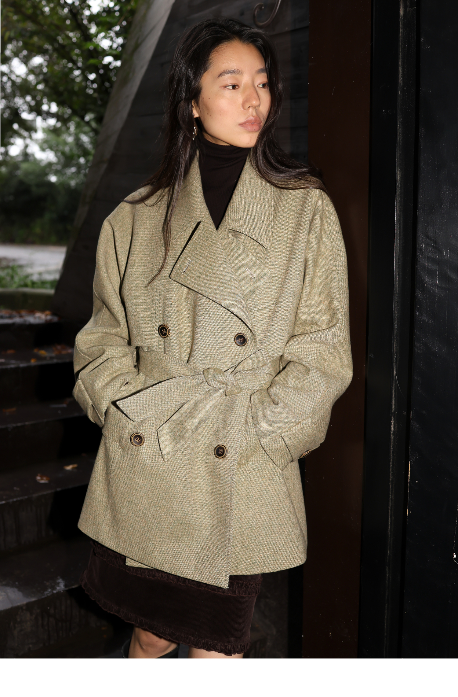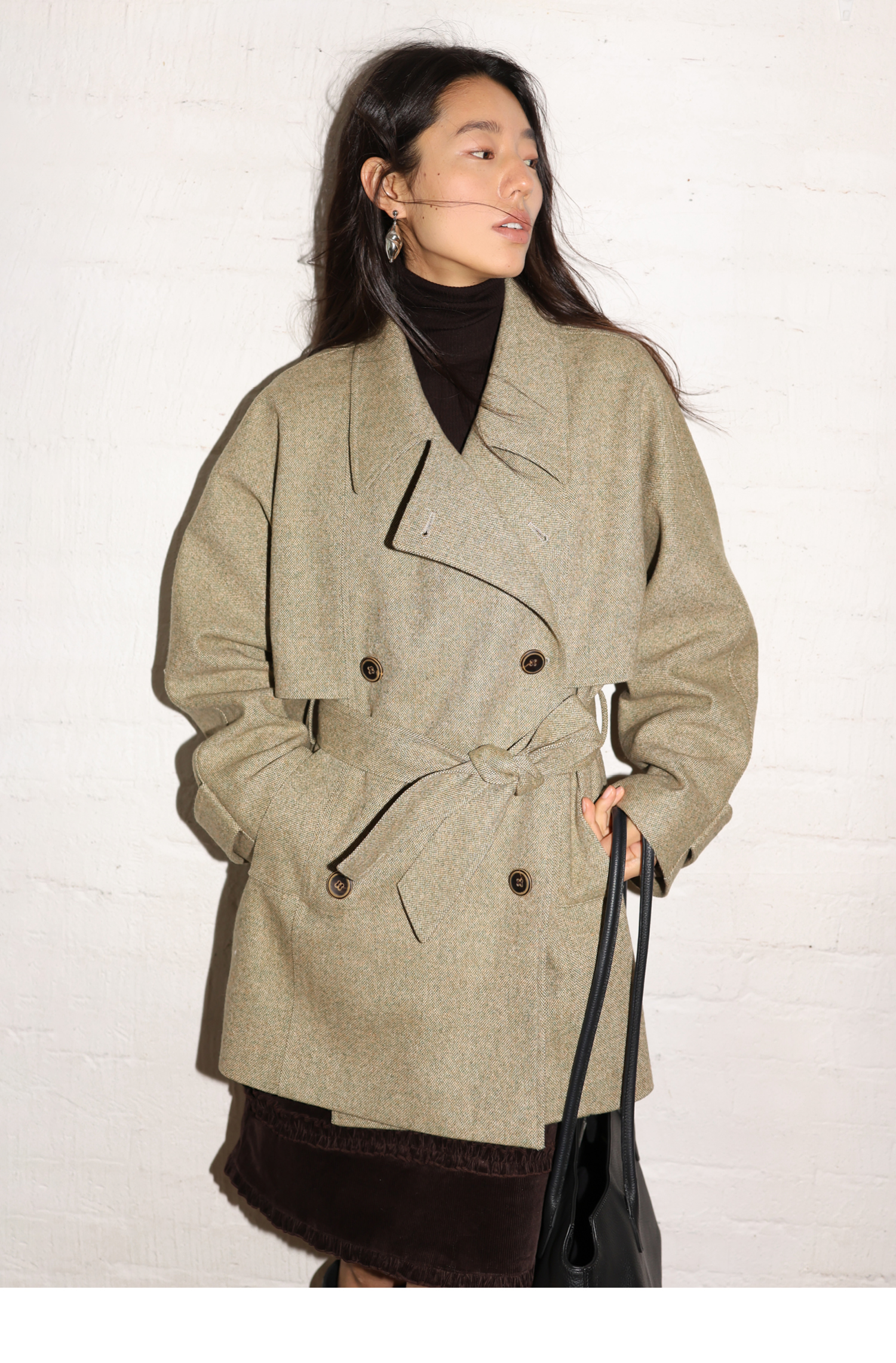素舶 绵羊毛风衣式呢子外套英伦风气质通勤中长款毛呢大衣外套
