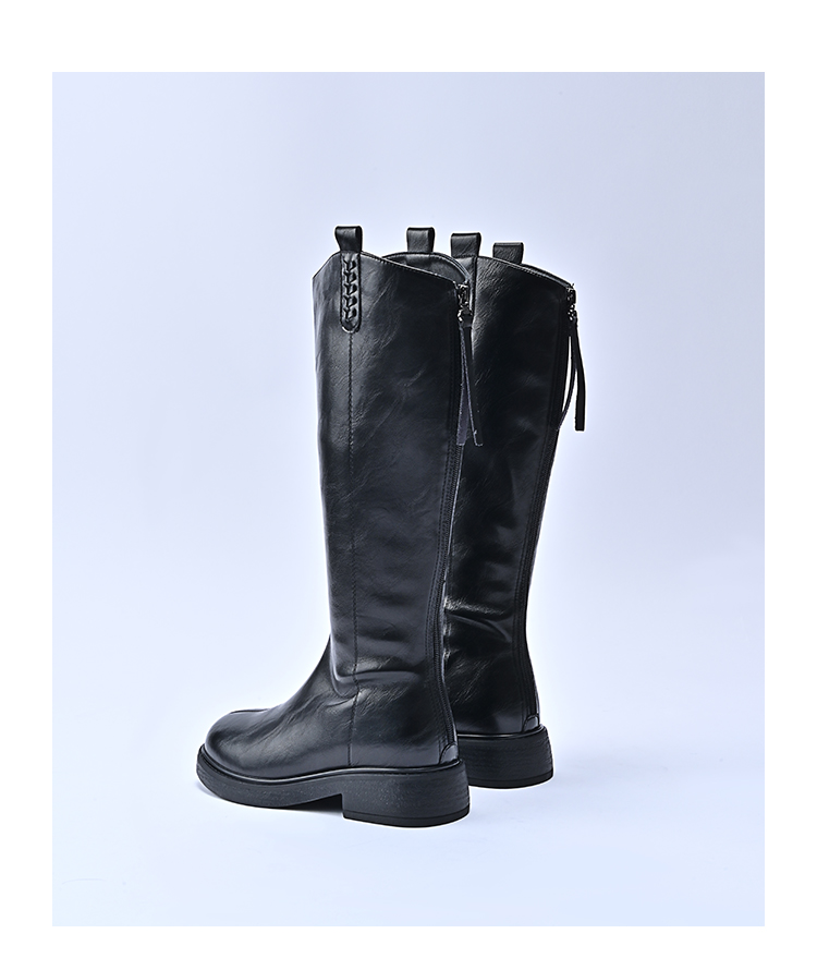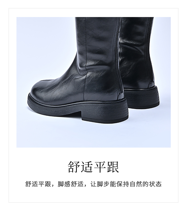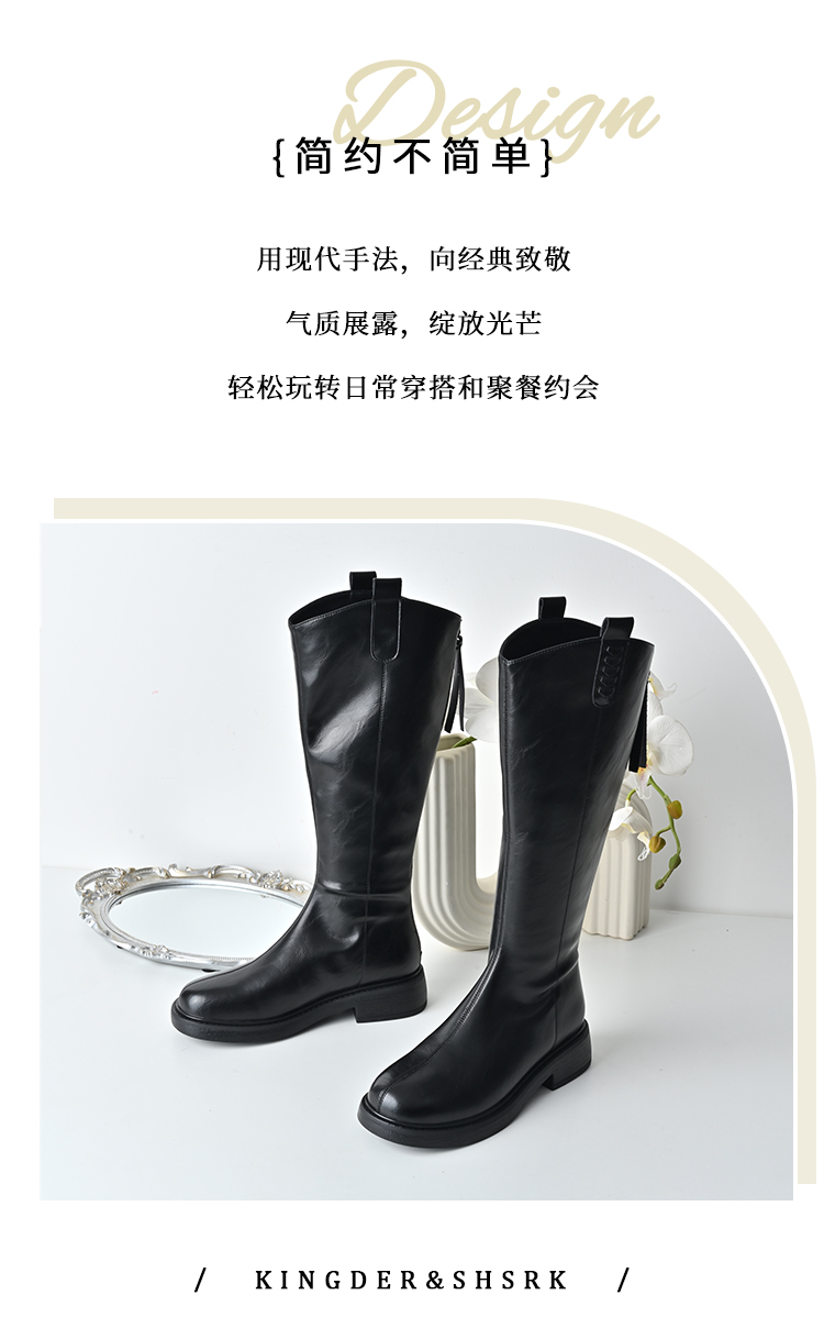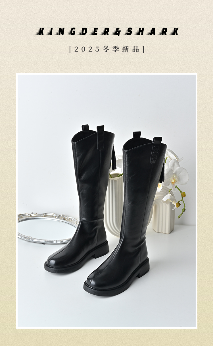 经典鲨2025冬专柜新品百搭平底圆头黑色后拉链时装长筒靴女KW385-558011