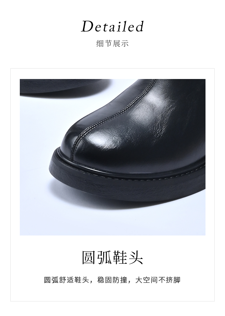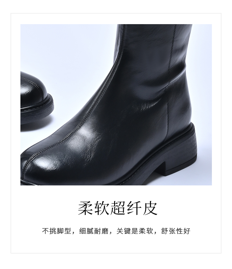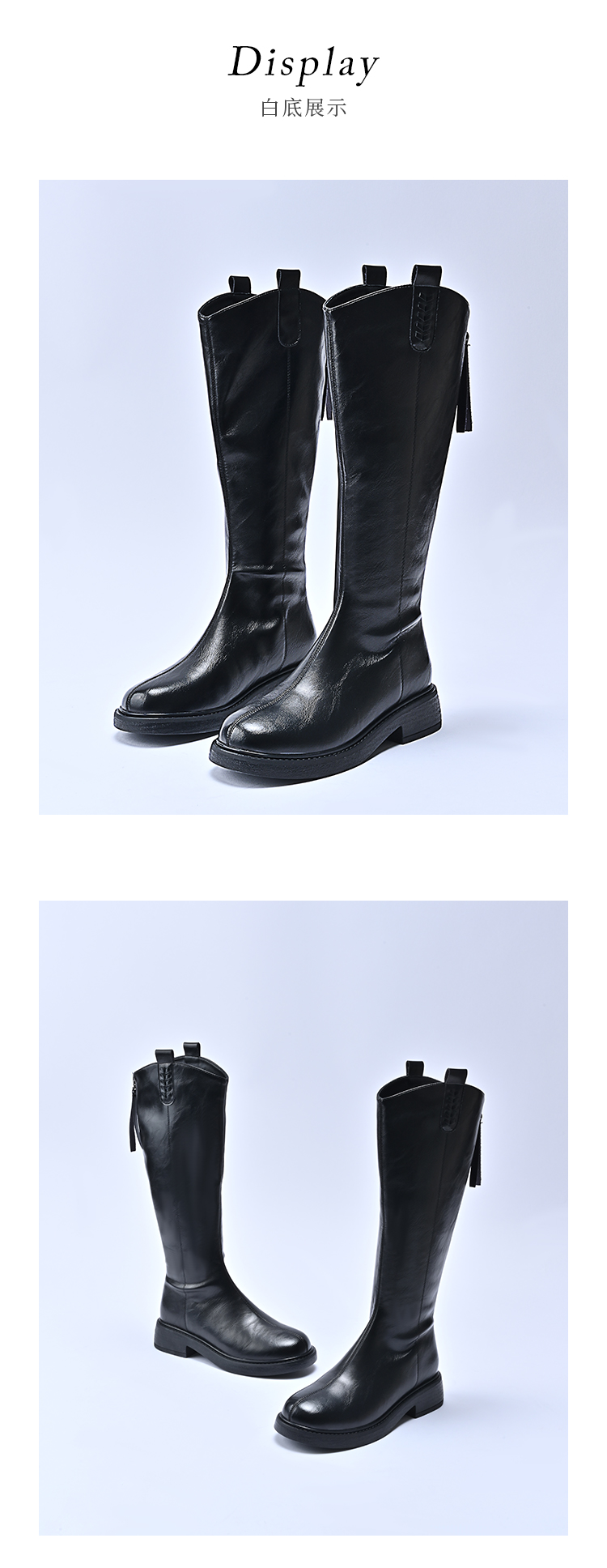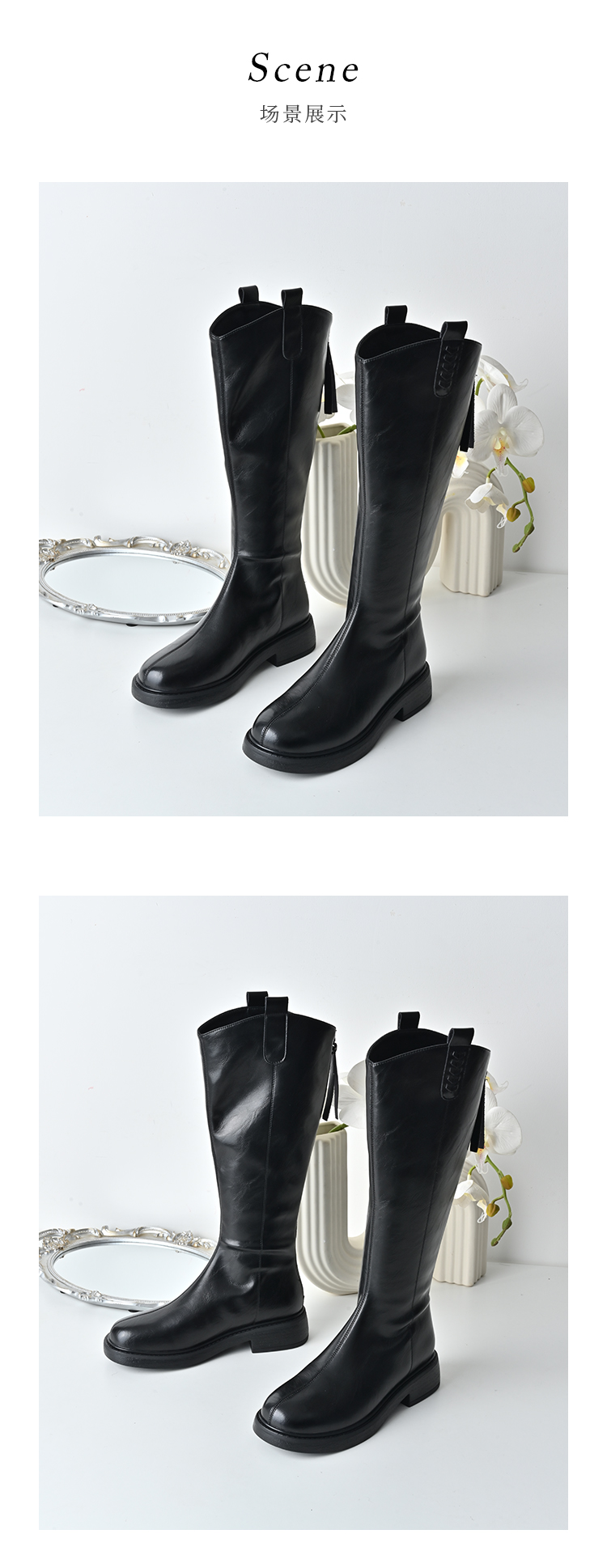 经典鲨2025冬专柜新品百搭平底圆头黑色后拉链时装长筒靴女KW385-558011