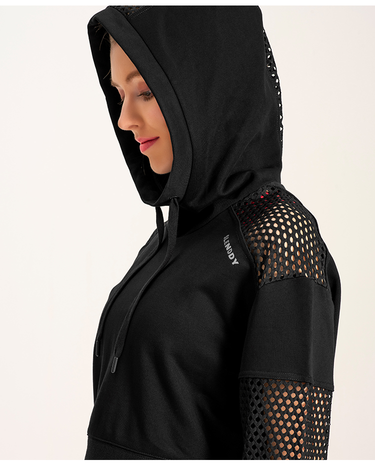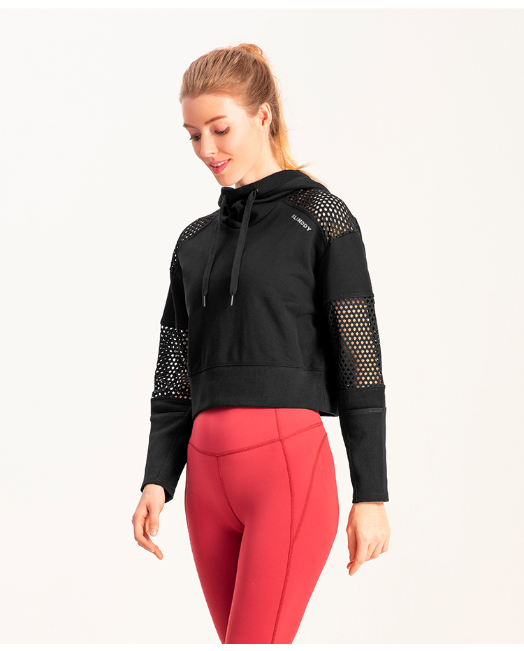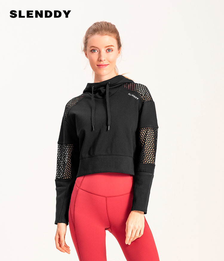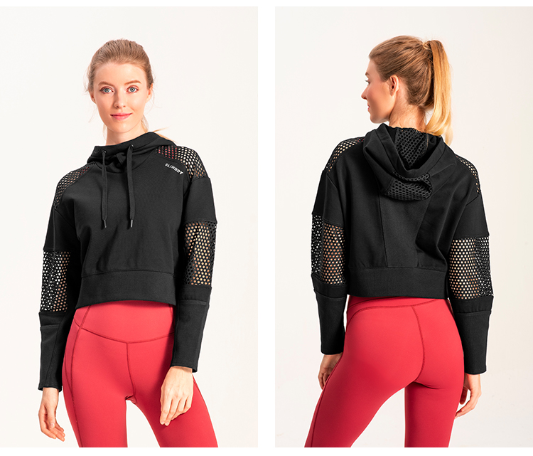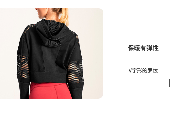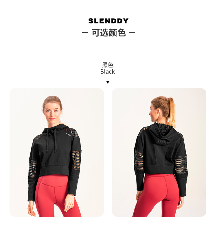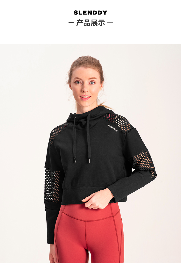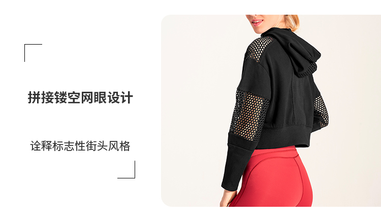 slenddy Spin短款连帽瑜伽外套网纱镂空瑜伽服运动卫衣S4004