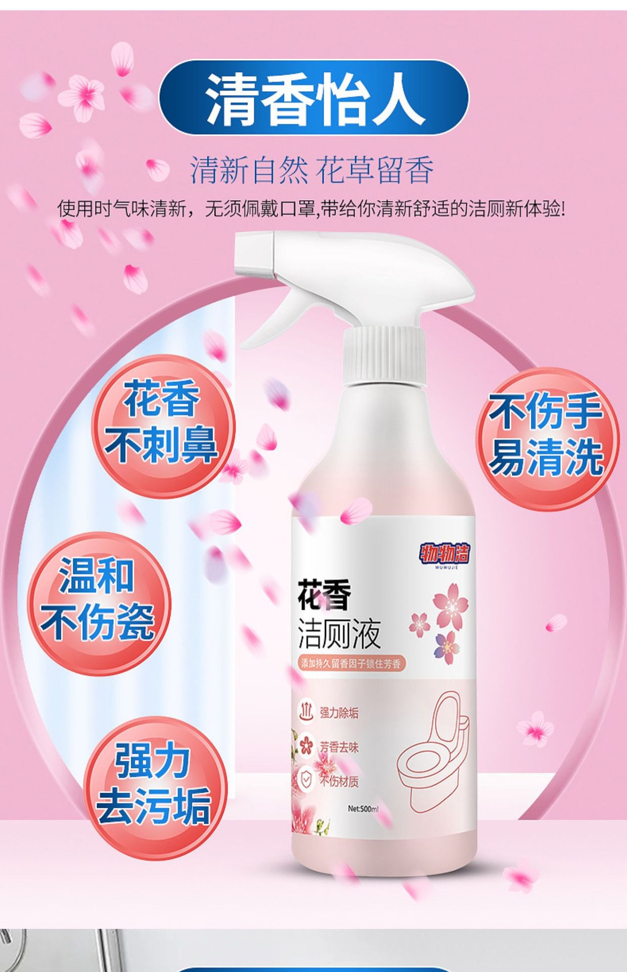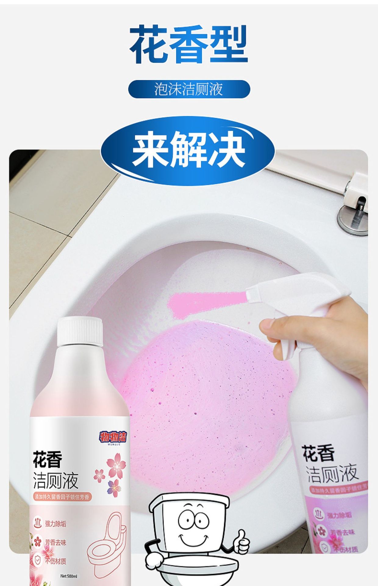 【买三送二❗️花香洁厕灵洁厕液】清新自然,清香怡人,清洁边缘污渍,卫生间马桶清洁剂洁厕净液体除臭去污除垢除尿垢