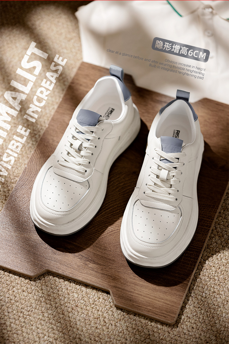 舒乐高鞋子男款增高鞋8cm男鞋透气板鞋休闲鞋厚底白色鞋男