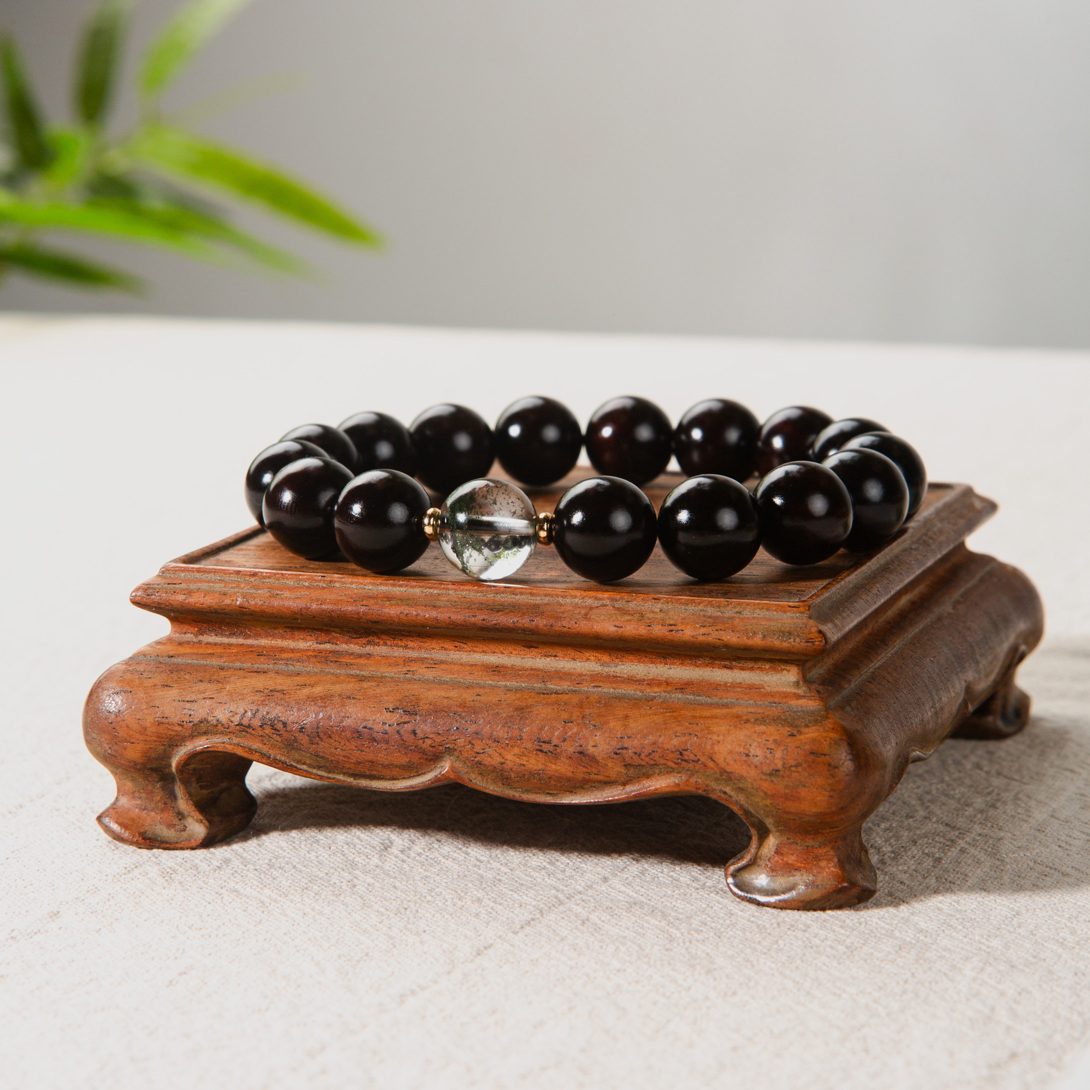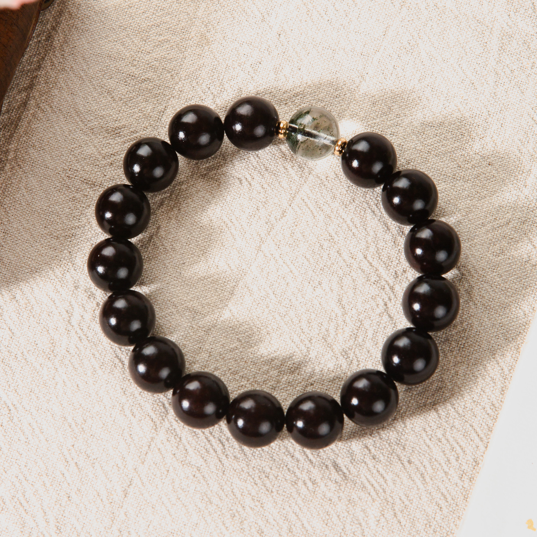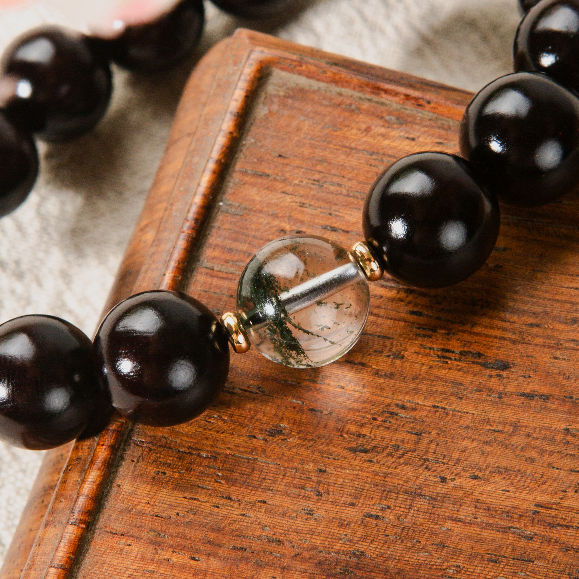 绿幽灵顶珠清代檀香紫檀家居老料制手串直径1.2cm