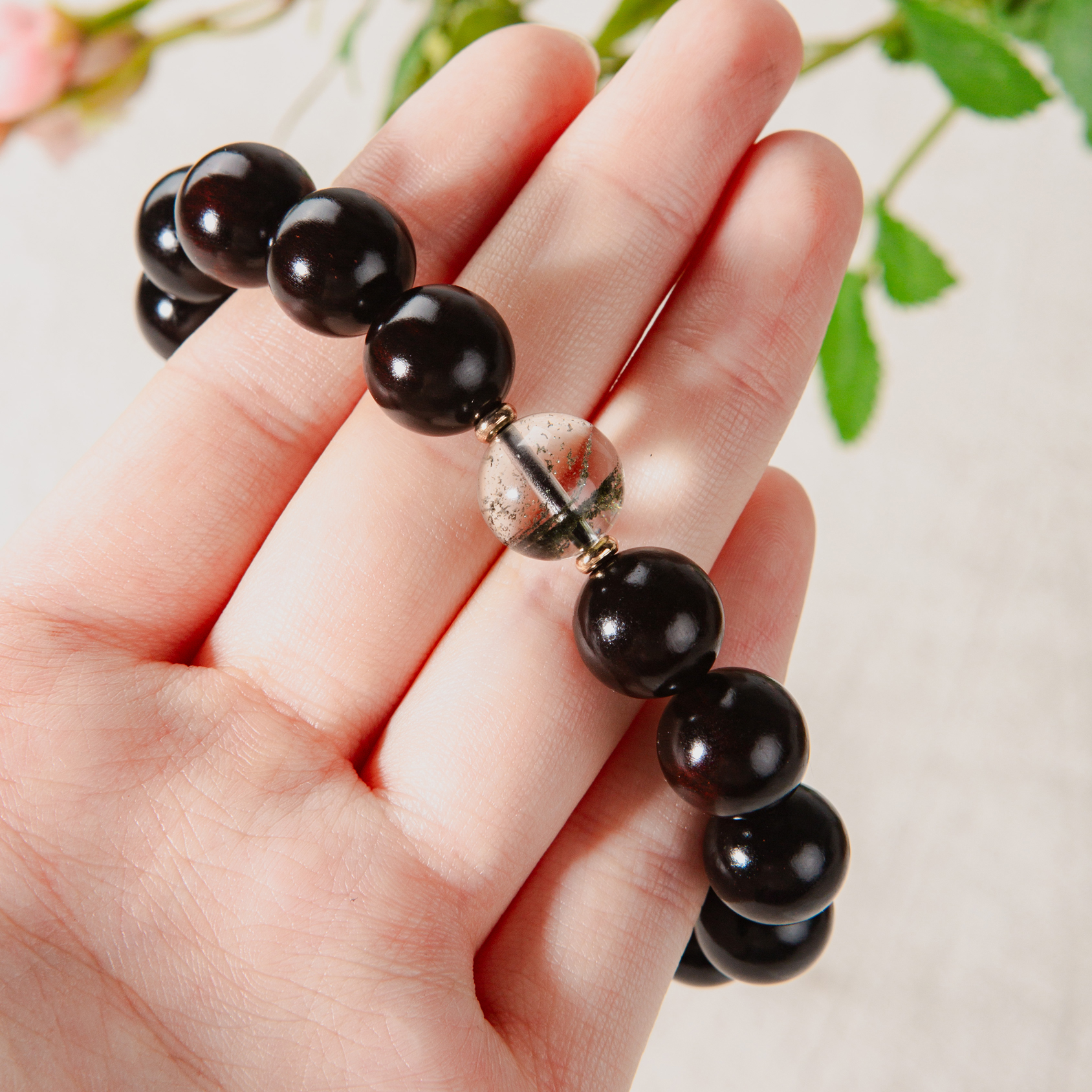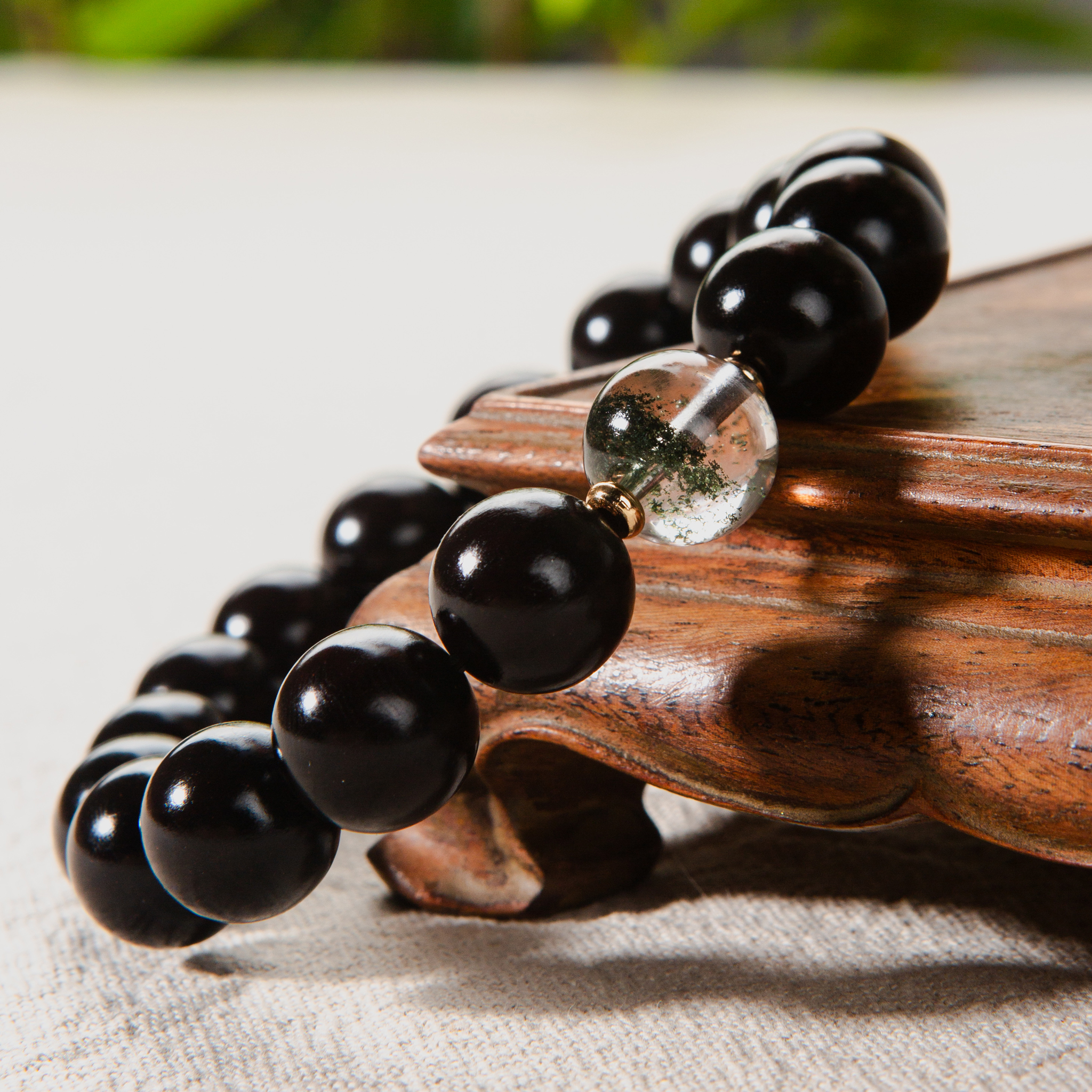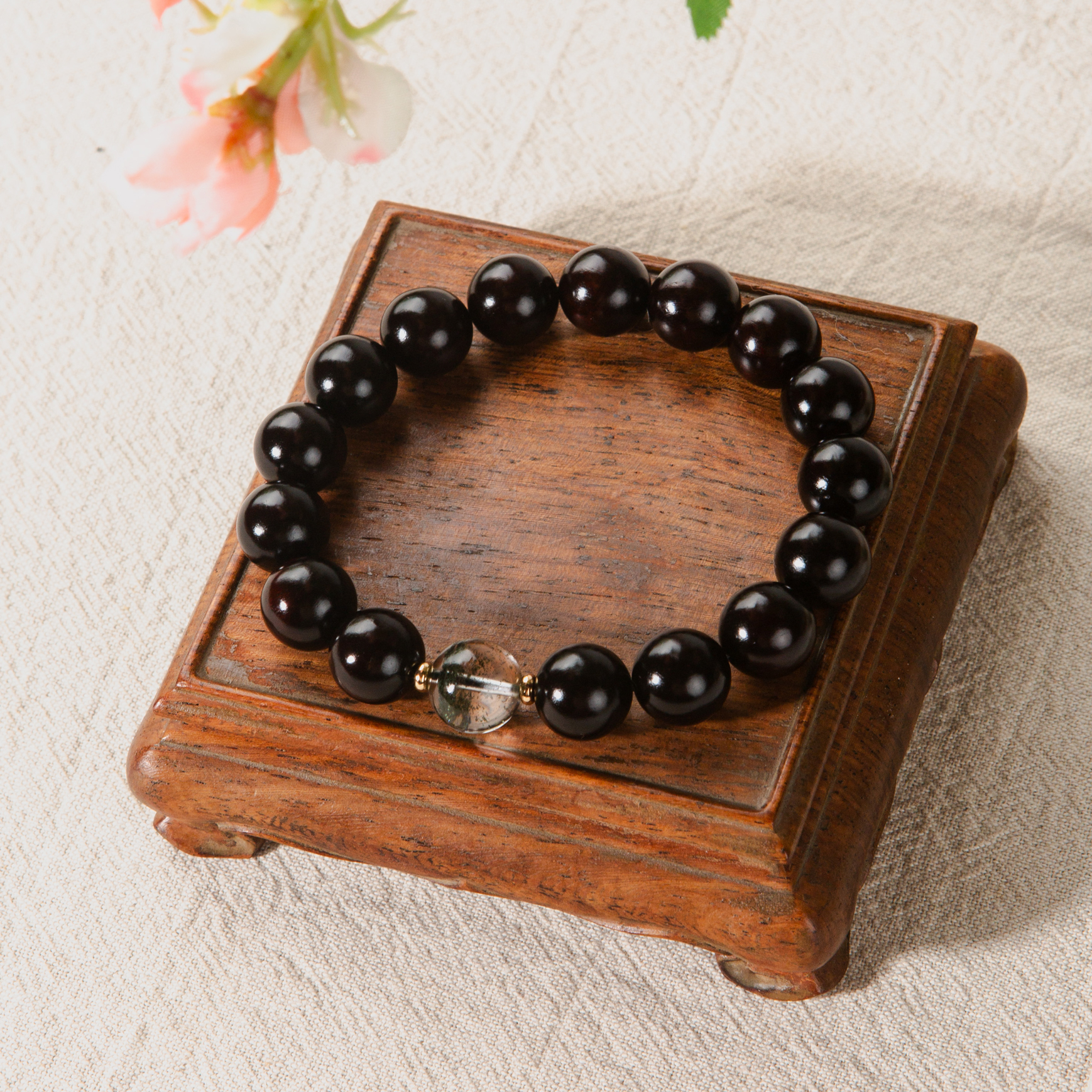 绿幽灵顶珠清代檀香紫檀家居老料制手串直径1.2cm