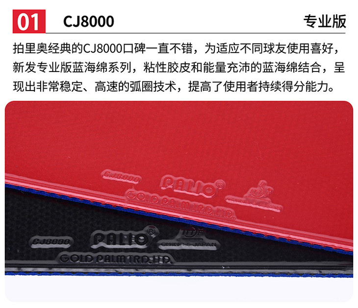 商品名称:拍里奥Palio CJ8000 PRO专业版套胶 蓝海绵版本 吃球更深 弹性更好